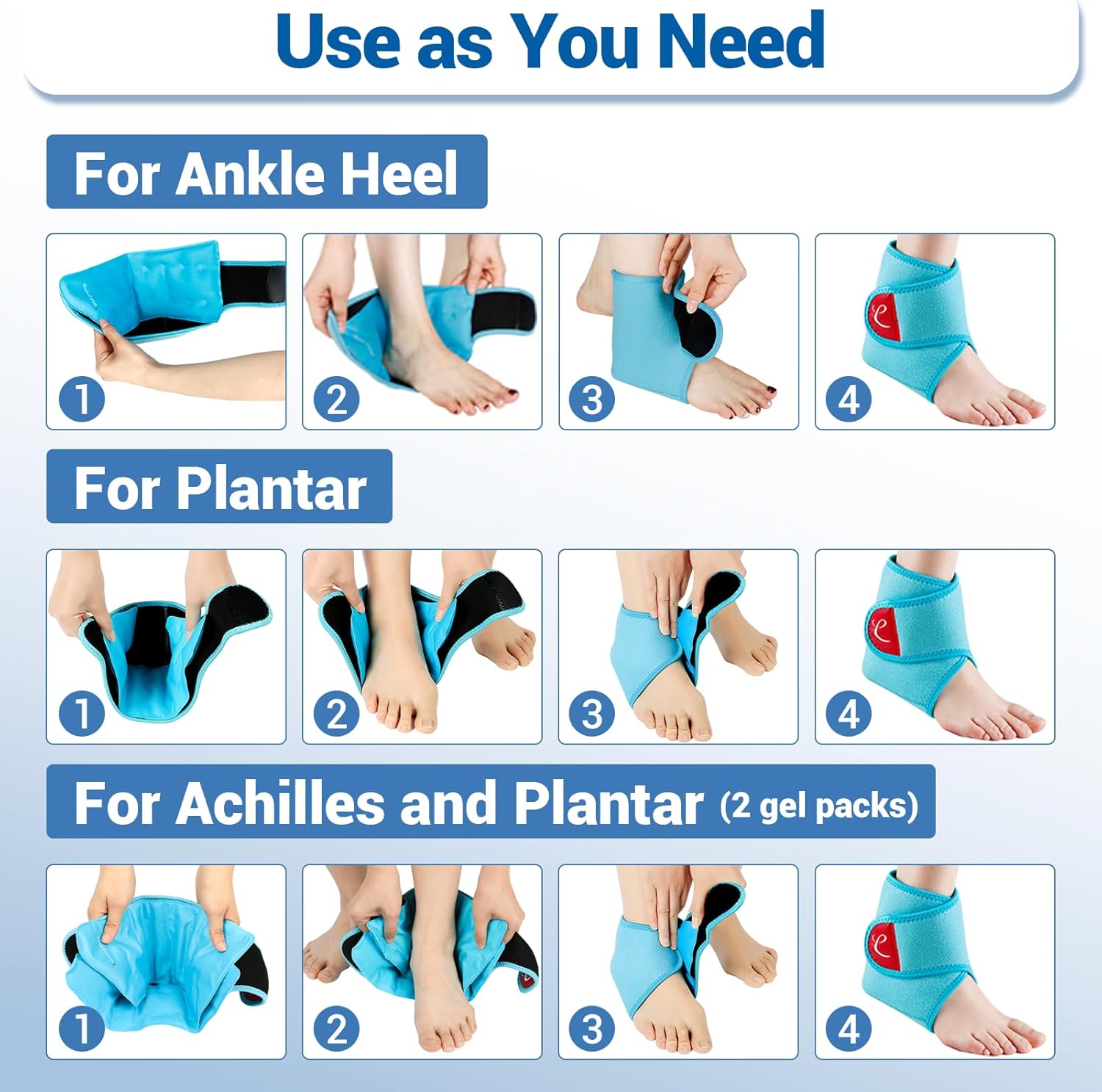 - Convenient, Cost-effective, Ever-ready, Alleviating: Contains 2 ankle ice packs. Offering convenient use on both ankles for long-term or recurring foot pain. With 2 ice packs, you can keep one in the freezer while using the other on sore muscles or injuries. It's obviously cost-effective to buy both together, and having an extra ice pack on hand is handy for unexpected injuries. Experience the convenience, affordability, and preparedness of the Comfytemp ice pack set of 2 for ankle pain relief.