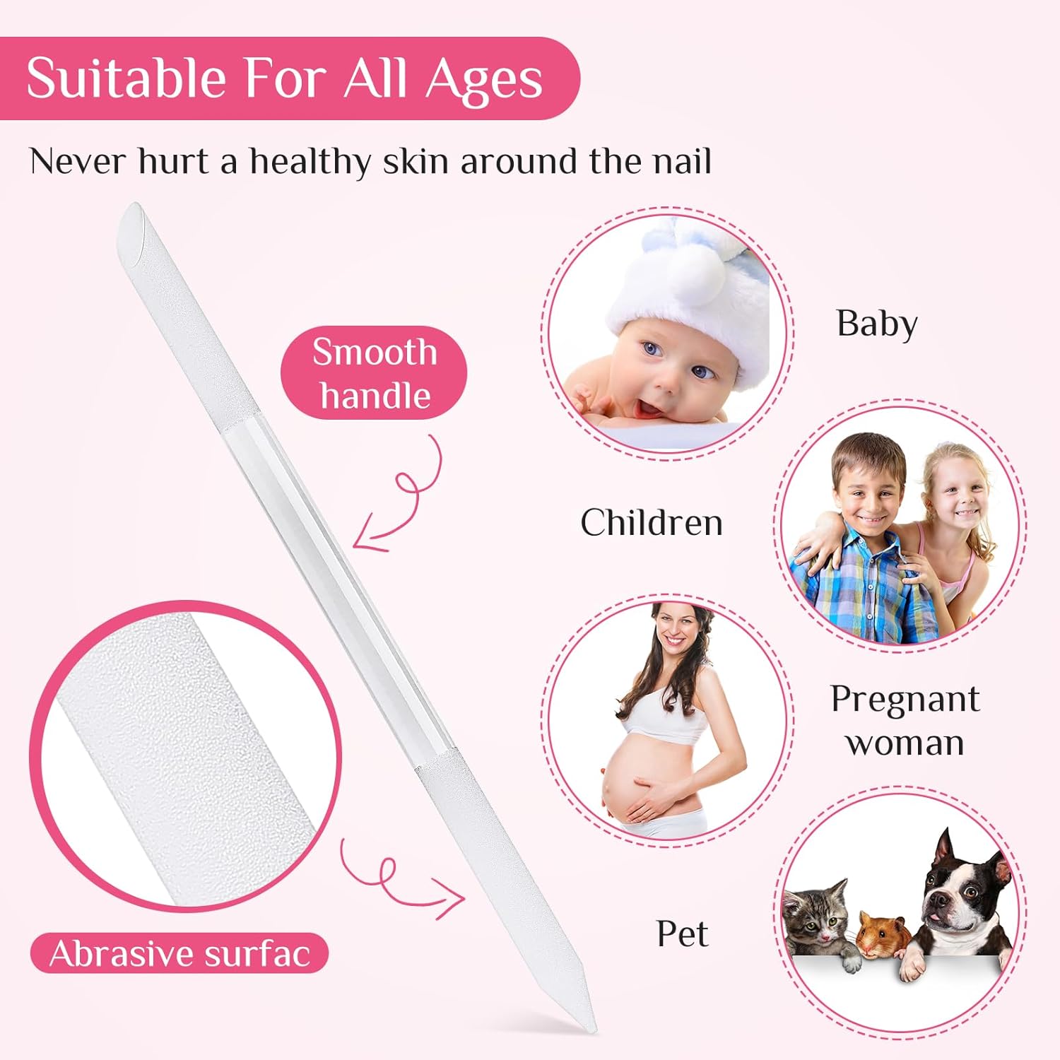 - Glass Material: constructed from glass, these glass cuticle sticks are durable and easy to maintain; The dual ended etched grit board ensures they remain sharp and effective without dulling or rusting, and they are gentle on healthy skin