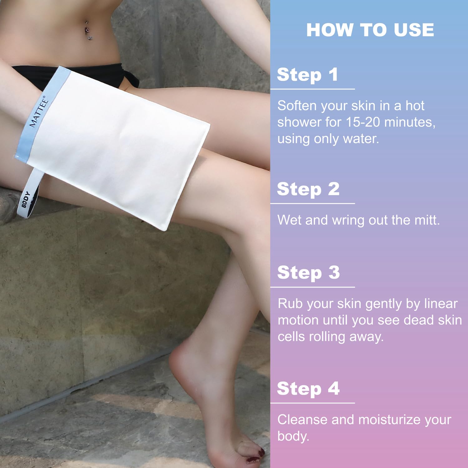 MATTEE 2 packs of 100% Natural Premium Deep Exfoliating Mitt, Exfoliating Glove, Korean Exfoliating Mitt, Kese Exfoliating Glove, Visibly Lifts Away Dead Skin, No Dye