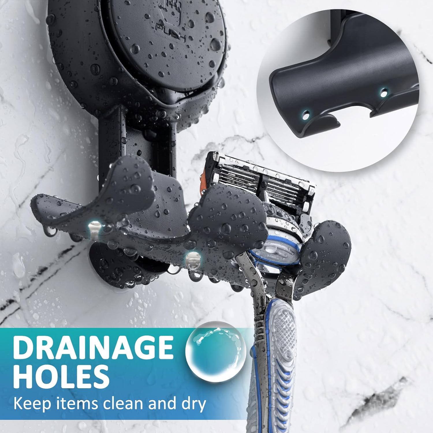 TAILI Suction Cup Razor Holder for Shower 2 Pack, Towel, Loofah, Shaver Holder for Shower Wall, Powerful Suction Cup Hooks for Inside Bathroom, Easy to Install and Reuse, Black