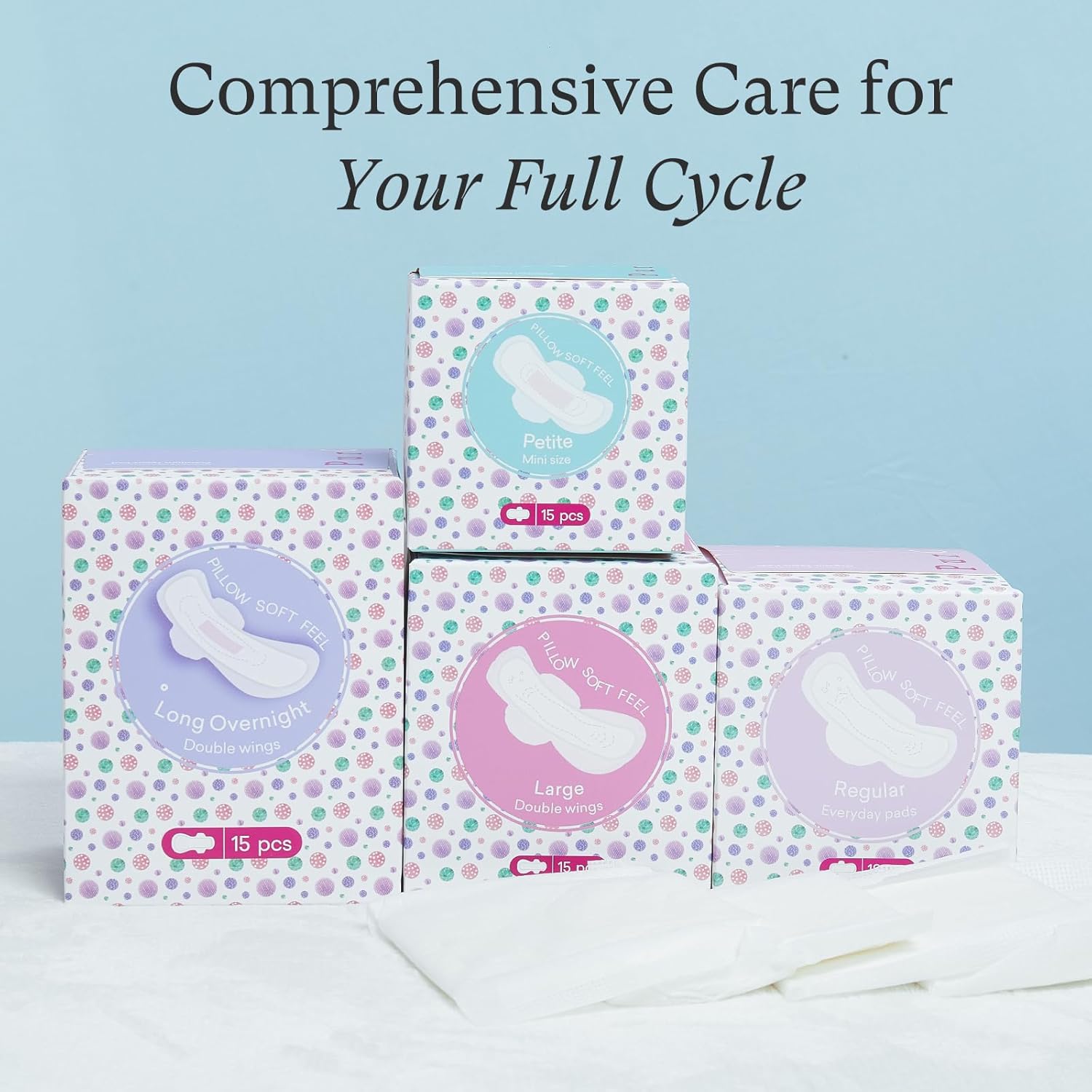 - Size Variety Galore: PurComfy presents a diverse range of options! Alongside the 7.5-inch petite mini size pads, we also have the 9.45-inch regular size pads, the 11.22-inch super absorbent large size pads, and the grand 13.78-inch Overnight Padsâessential tween pads and school must-haves for teen girlsâcatering to different needs. Whether it's day or night, whether you're active, studying, going out, or sleeping like a queen, our sanitary pads provide you with the best support.