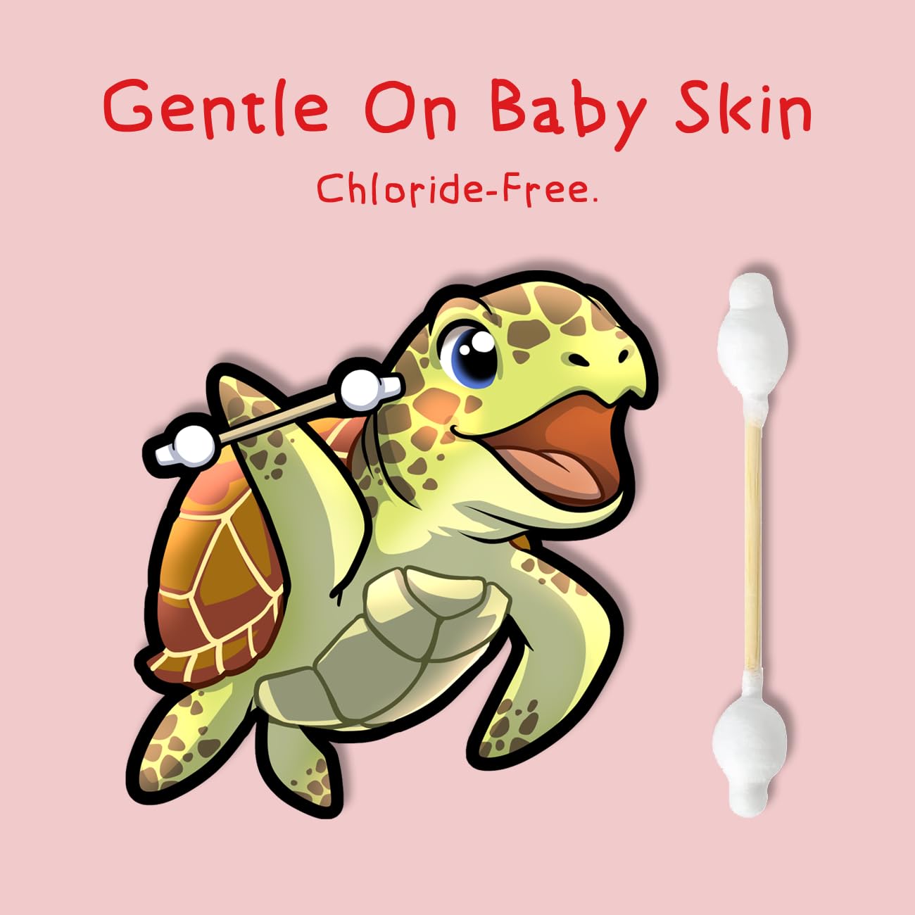 - PURE COTTON â Sea Turtle Bamboo Cotton Swabs are spun with organic cotton that is naturally durable, hypoallergenic, and chloride free for the most sensitive skin.