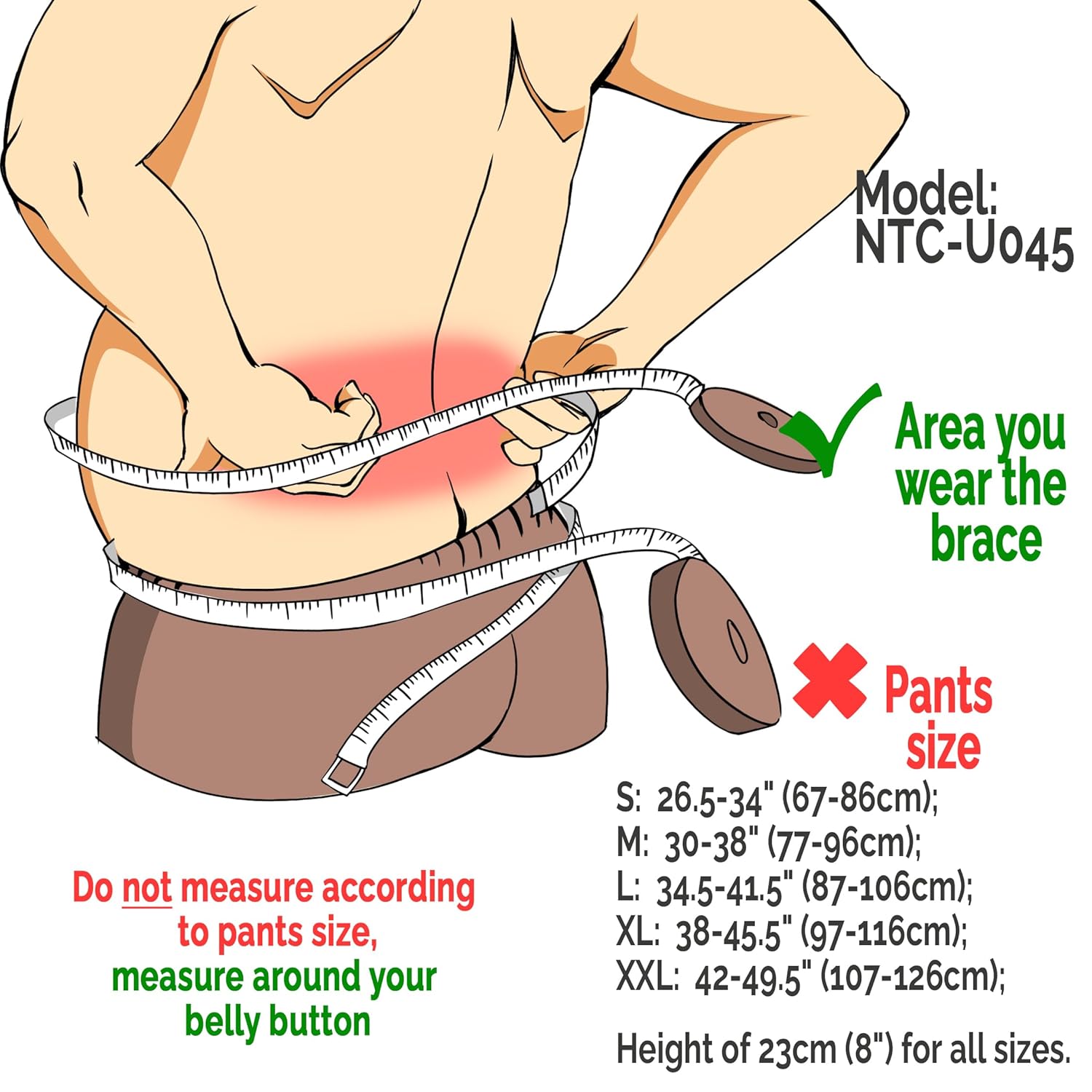 - See 2nd product picture for how to measure around the back then refer to size chart in product description to select an accurate size; Do not choose according to your pants or trousers size
