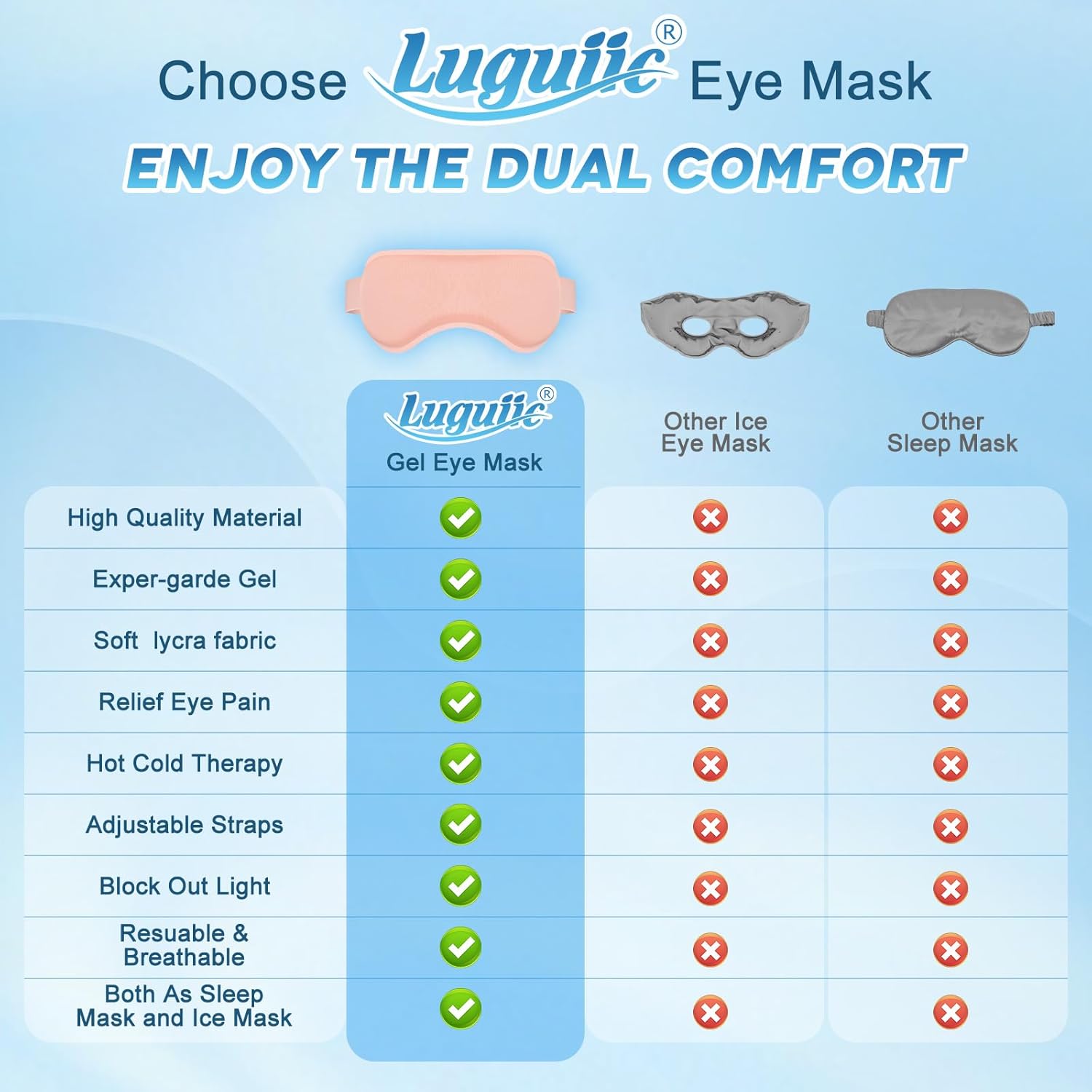 - 【Indestructible Light Blocking】Experience perfect light blocking with our gel eye mask, featuring a human-engineered structure with a reinforced nose bridge. Whether you're on a busiess trip or embarking on a journey, this gel eye mask cold pack ensures impeccable light blocking, providing you with an essential tool for rest on the go. Enjoy uninterrupted relaxation and quality sleep, no matter where journey you go on.