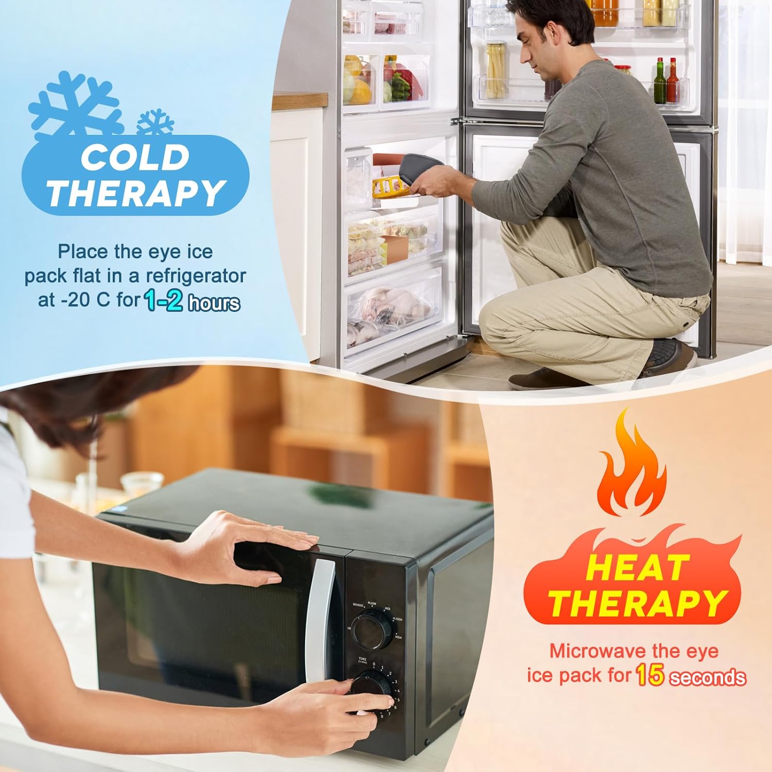 - 【Cold or Hot Therapy Options】Experience the unique benefits of our expert-grade solid gel, pop it in the fridge for a refreshing freeze or gently warm it in microwave(Power under 700 watts). Unlike other liquid gels, it remains soft and comfortable, adhering to your eye to relieve eyes fatigue after take out of fridge. This makes it the perfect gift for individuals dealing with insomnia, sleep disorders, headache, dark circles, eye warmer compress for dry, and eye puffiness – a thoughtful gesture for their well-being.