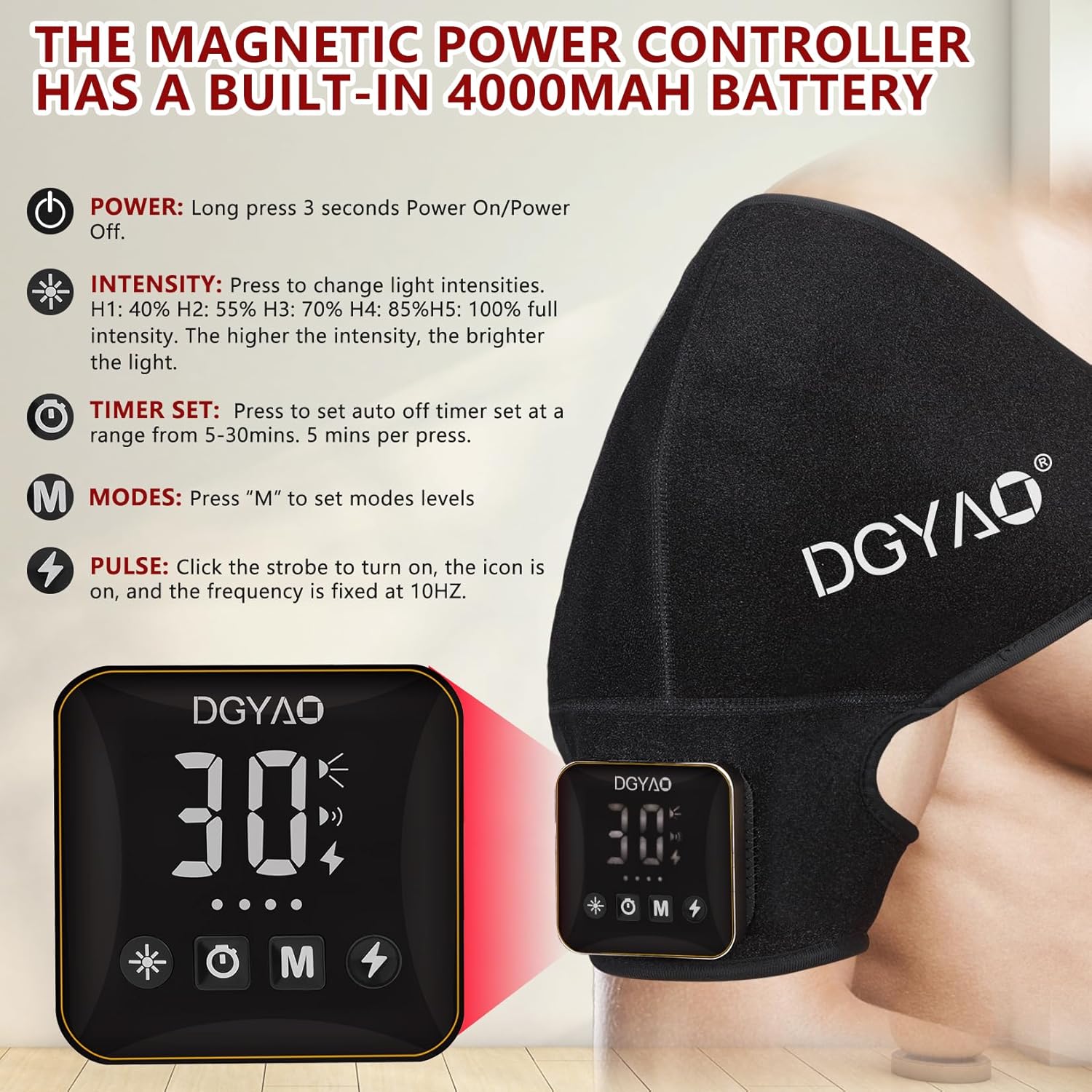 - đWireless Magnetic Power Bank and Controller - Red light therapy for shoulder and neck device with 4000 mAh magnetic power bank which is also used as a controllerďźPortable design makes it easy to do light therapy without the constraints of time and spaceďźIt is convenient to use it at work, doing housework, reading, traveling, camping.