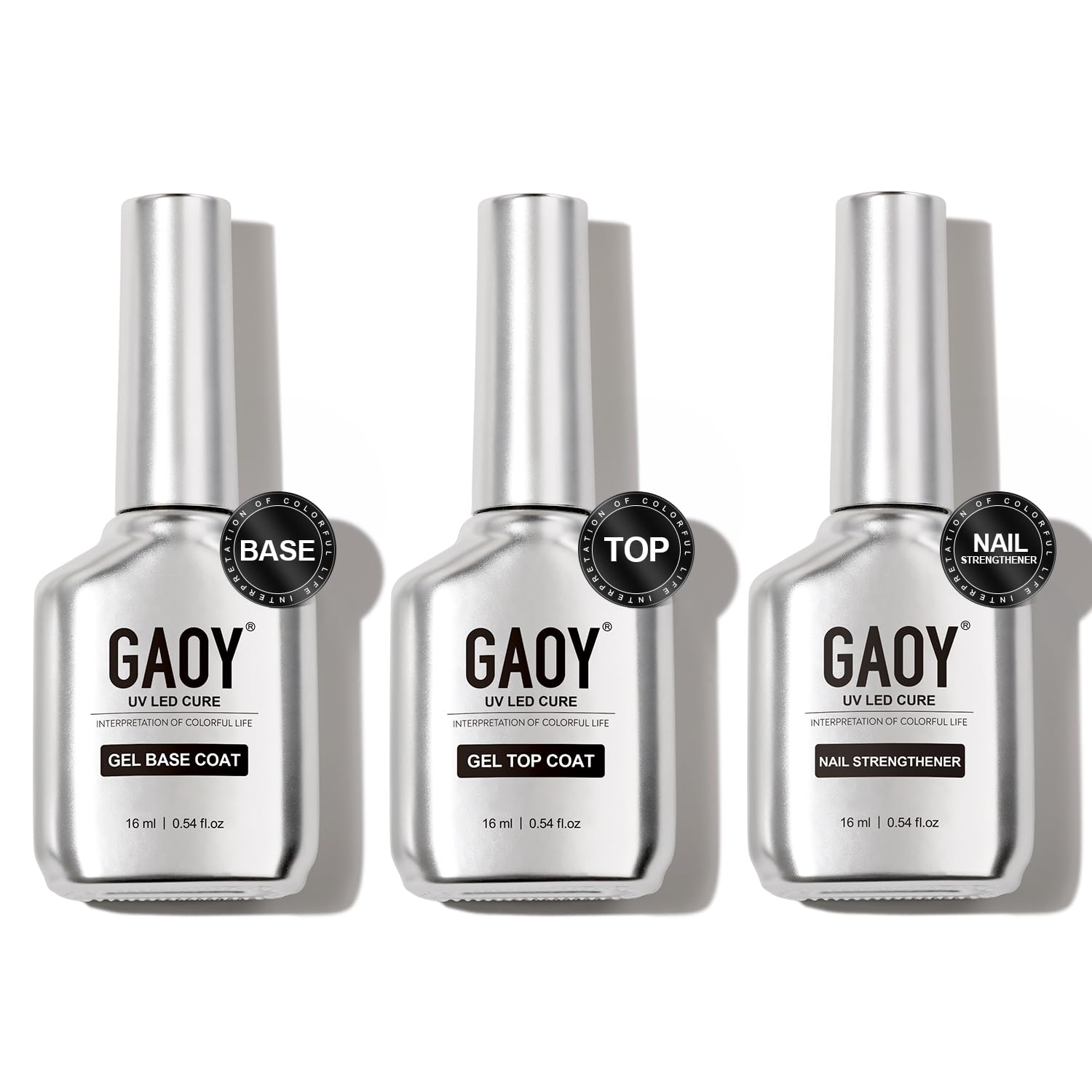 GAOY Gel Top Coat, Nail Strengthener and Base Coat Set, 3 Pcs 16ml Clear Glossy No Wipe Combination for UV Light Cure Gel Nail Polish