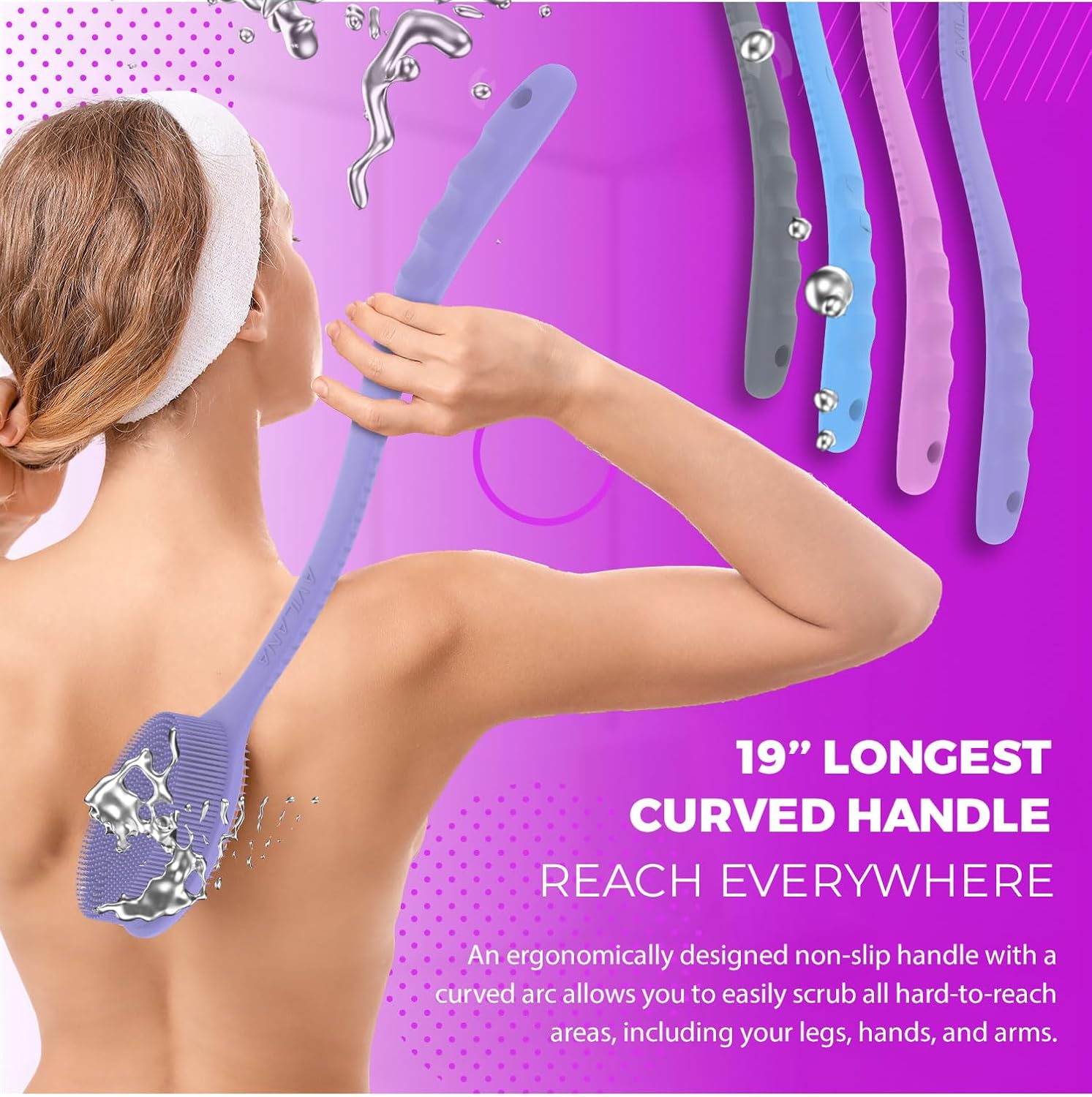 - 5 Specialized Models Available - Choose from Massage (relaxing nodules), Exfoliate (smoothing bristles), Scalp (shampoo distribution), Body & Face Combo (complete set), or Long Handle (extended reach).