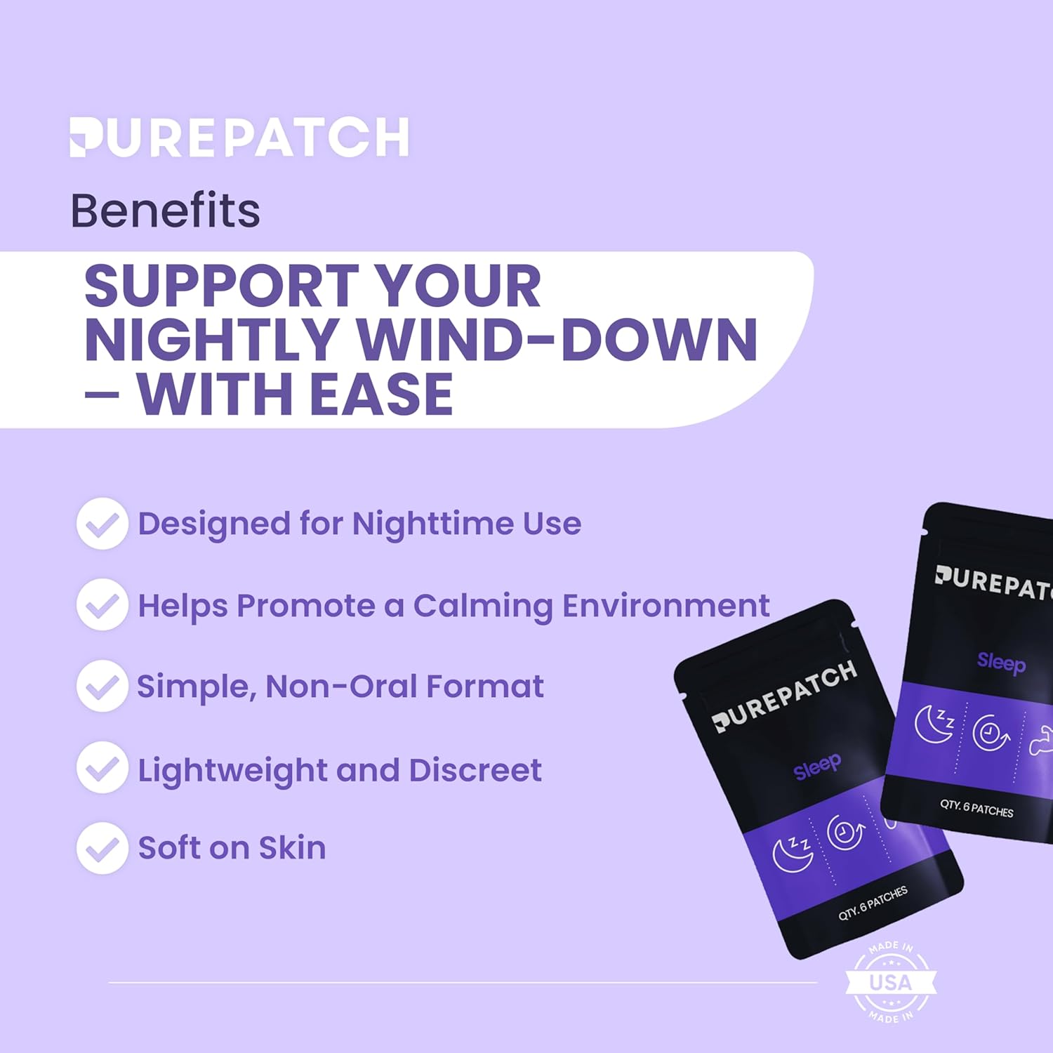Pure Patch Sleep Patch – Plant-Based Vegan Topical Patch – Magnesium Glycinate – GABA – L-Theanine – Apigenin – Non-Ingestible – Water-Resistant – Gentle on Skin – Gluten Free – Made in USA –6 Patches