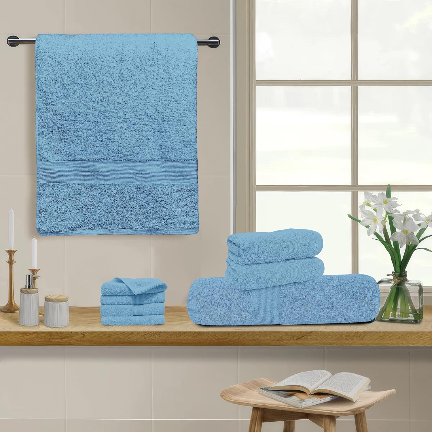 Luxury 8 Piece Towel Set, 2 Bath Towels 2 Hand Towels 4 Washcloths, Towels for Bathroom, Home, Spa & Gym - Highly Absorbent Ultra Soft Quick-Dry (Sky Blue)