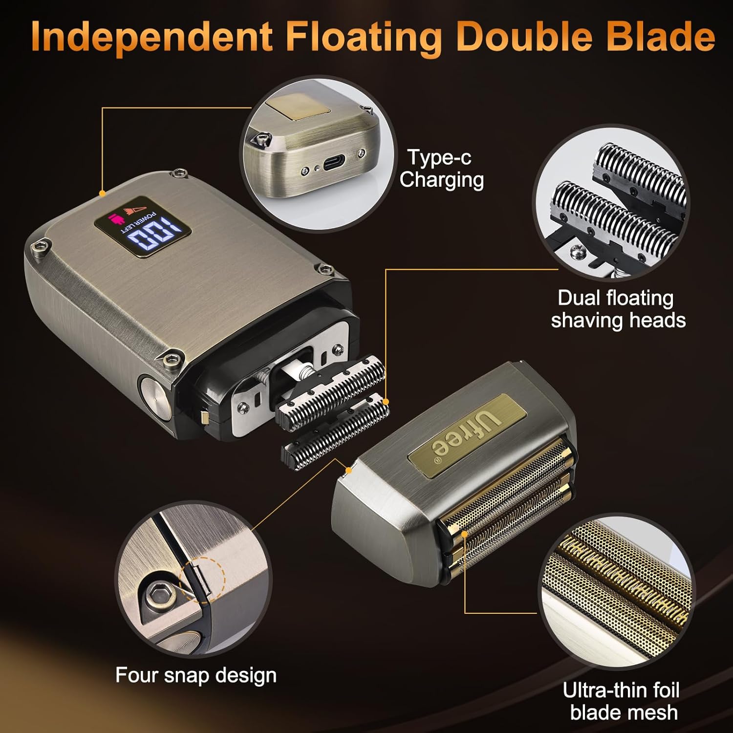 - Double Floating Razor: The electric shavers is equipped with intelligent dual floating shaving heads, and the slim and smooth foil blade mesh hugs the contours of your face, The electric foil shaver captures short, thicker whiskers and easily trims the face, neck, jaw without pulling on your beard, providing you with a comfortable and convenient shaving experience.