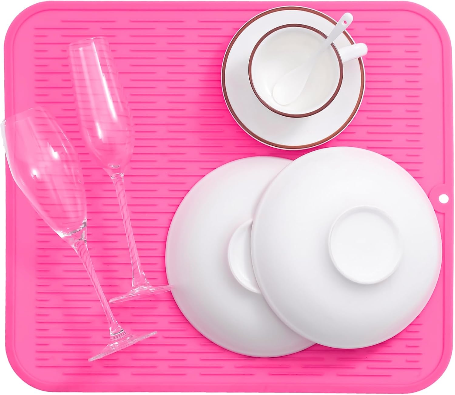 Silicone Dish Drying Mat for Multiple Usage,Easy clean,Eco-friendly,Heat-resistant Silicone Mat for Kitchen Counter or Sink,Refrigerator or Drawer Liner Rose XL 18 inches x 16 inches