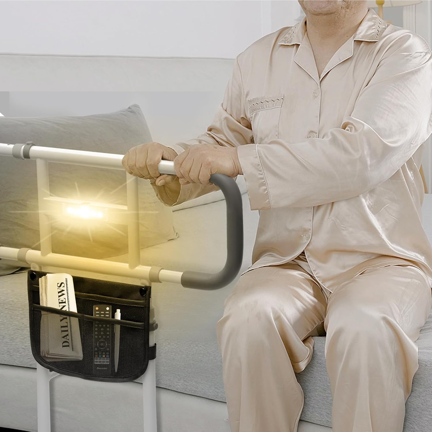 Bed Rails for Elderly Adults, Height Adjustable Bed Assist Rail with Motion Light & Storage Pouch, Safety Bed Handle with Support Legs for Seniors, Fit Any Bed