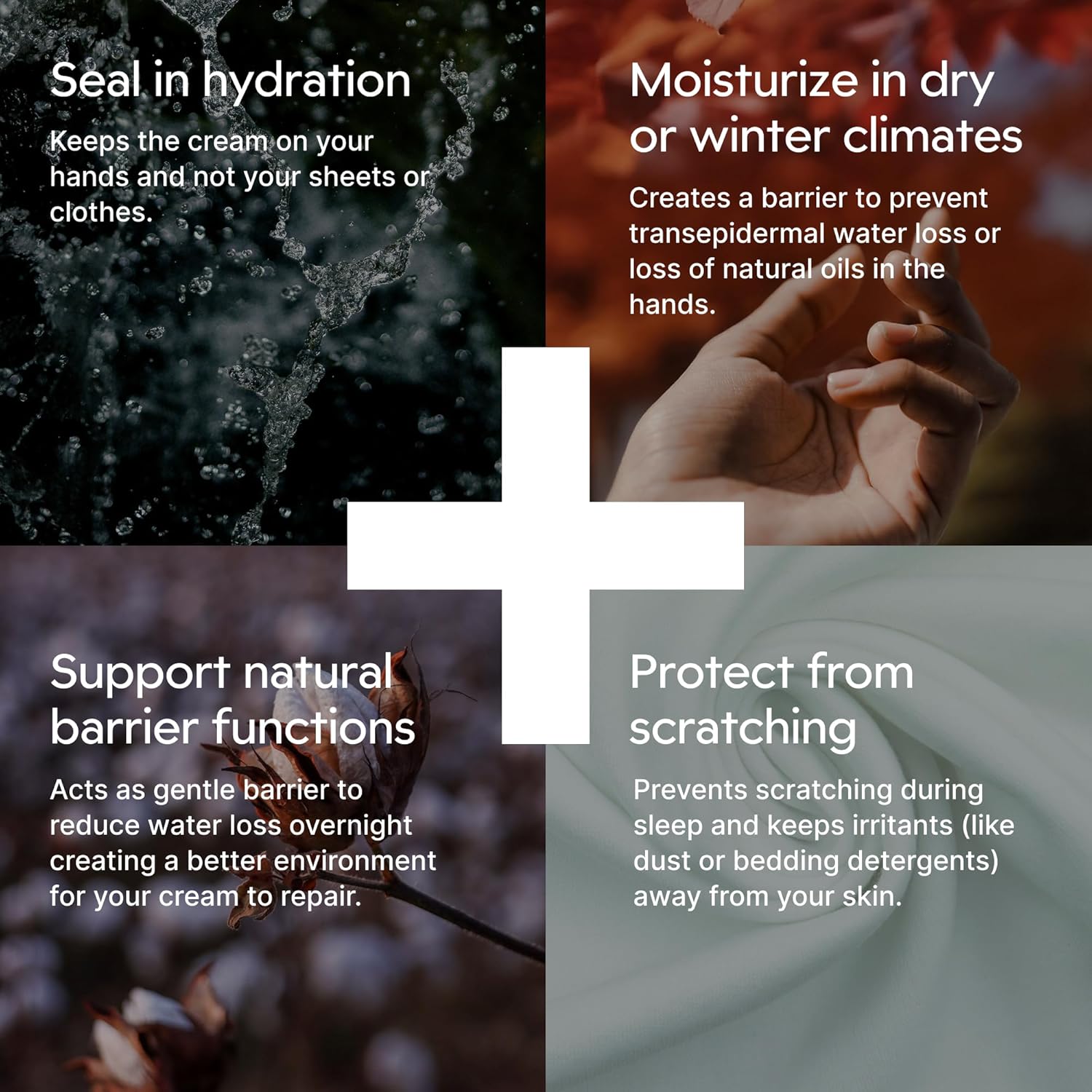 - Hydration Barrier: Enhance hand recovery with moisturizing gloves for dry hands that lock in moisture overnight. Whether used as sleeping gloves or for daily tasks, they ensure skin remains hydrated and supple, reducing dryness and cracking