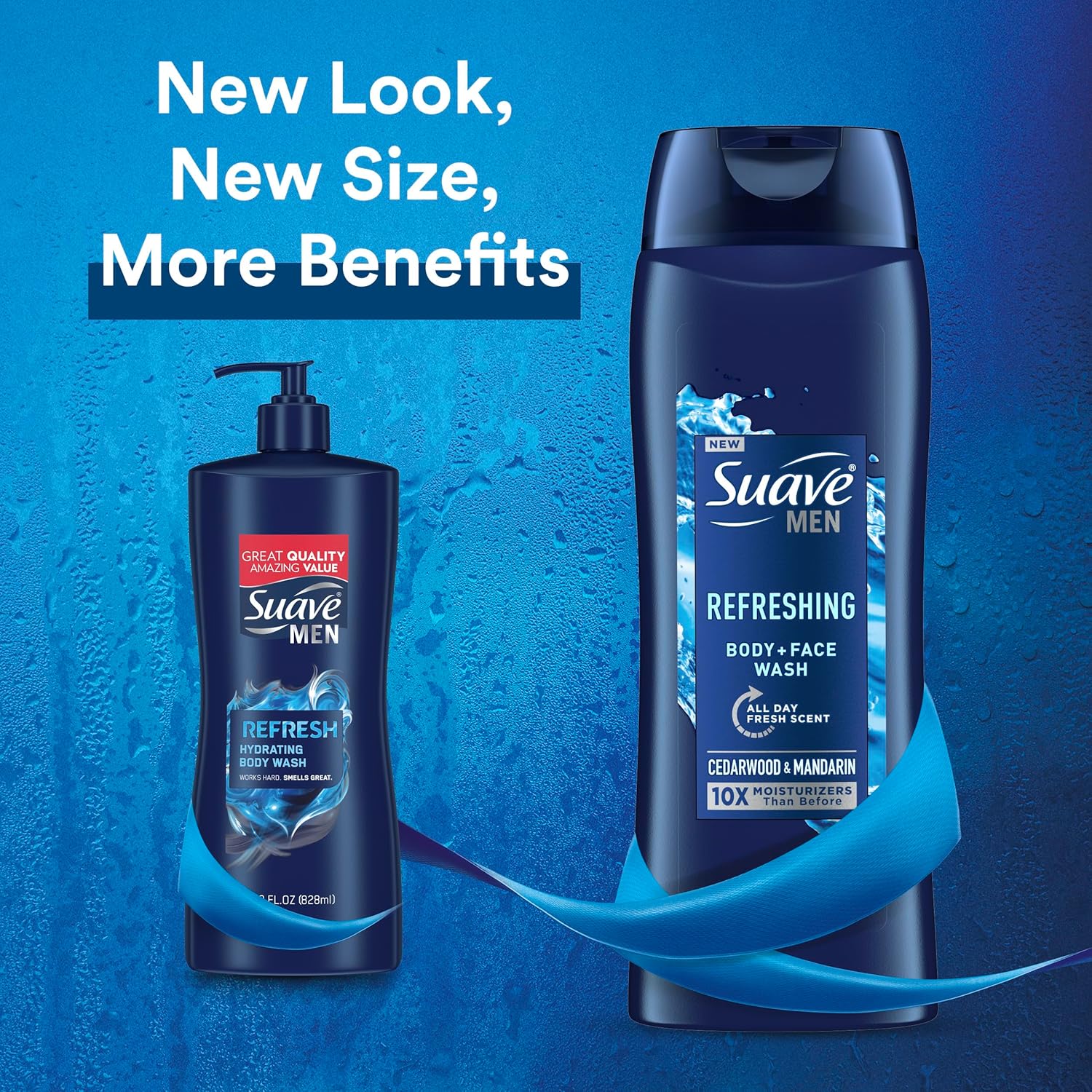 - New look and even more benefits! Work hard & smell great with the Suave Men Refreshing Face and Body Wash!