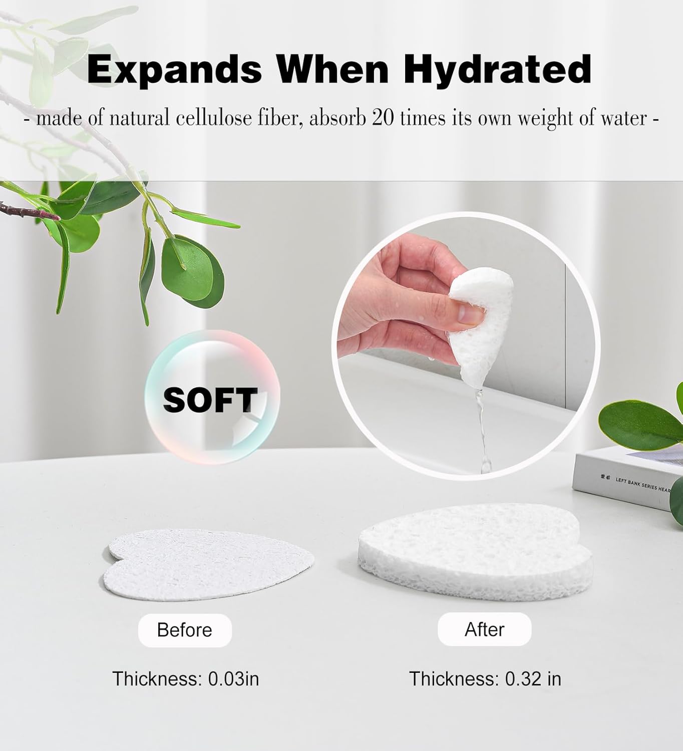50-Count Compressed Facial Sponges for Estheticians- 100% Natural Cellulose Face Sponge Spa Sponges for Face Cleansing, Massage, Pore Exfoliating, Mask, Makeup Removal (Love-White)