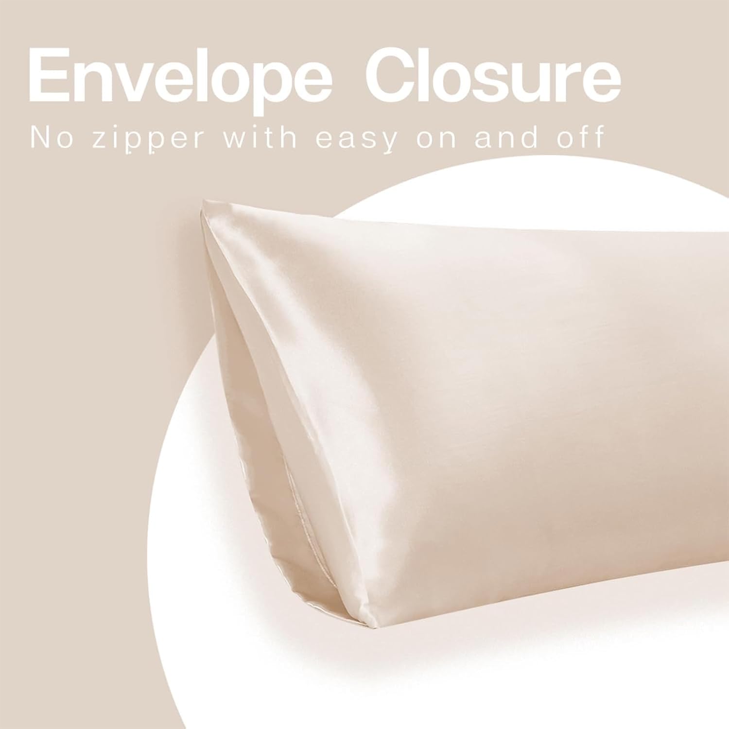 MR&HM Satin Body Pillow Cover, Soft and Breathable Body Pillow Case with Envelope Closure, Cooling and Silky Long Pillowcase for Hair and Skin,Grey (20x54, Beige)