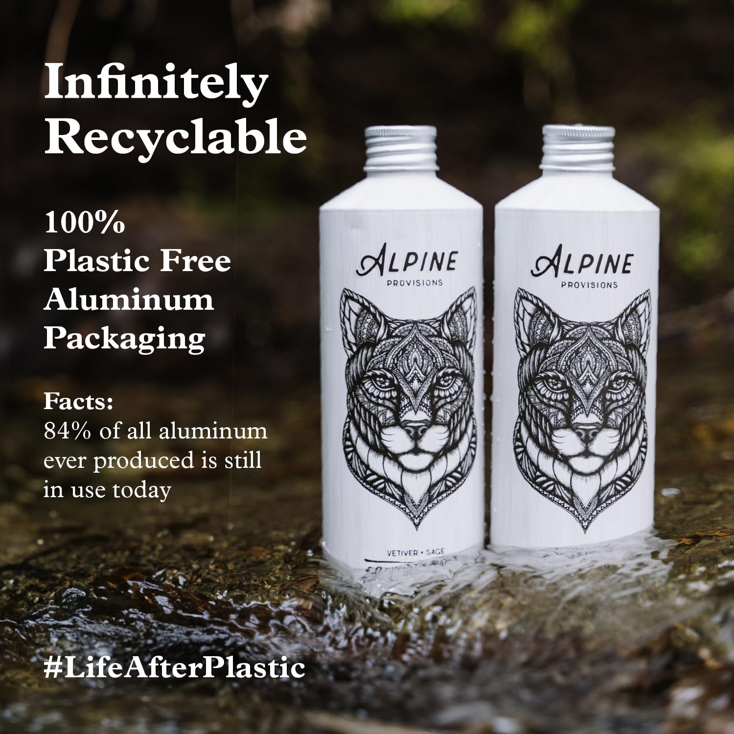 Alpine Provisions Natural Fir & Sage Moisturizing Body Wash – Refreshing with Essential Oils, Aloe Vera & Coconut Oil – Vegan, Sulfate-Free, Plastic-Free Aluminum Bottle – 16.9 FL Oz