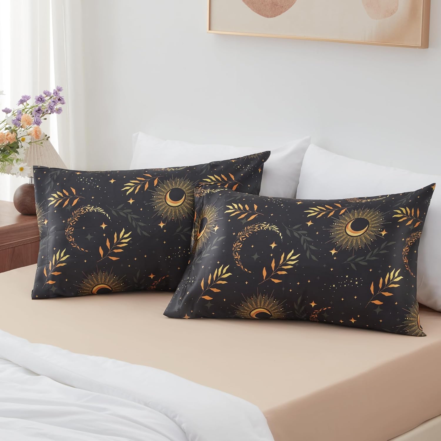EXQ Home Satin Pillowcase for Hair and Skin Queen - Printed Black Moon Silk Pillowcase 2 Pack 20x30 inches - Satin Pillow Cases Set of 2 with Envelope Closure, Gifts for Women