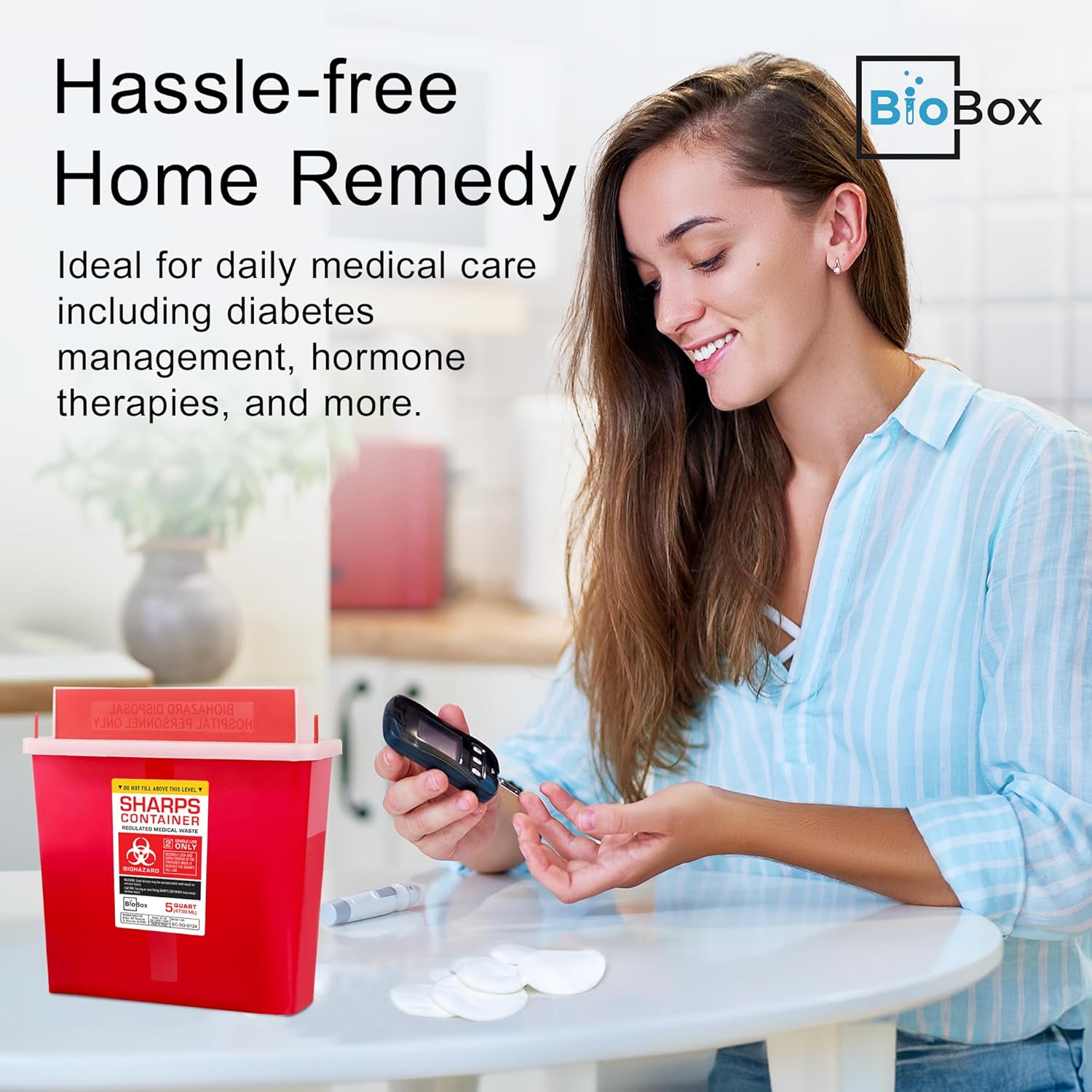 Sharps Container Large - Sharps Containers for Home Use and Labs - Portable Needle Disposal and Travel Size Biohazard Bin - 5 Quart (Pack of 1)
