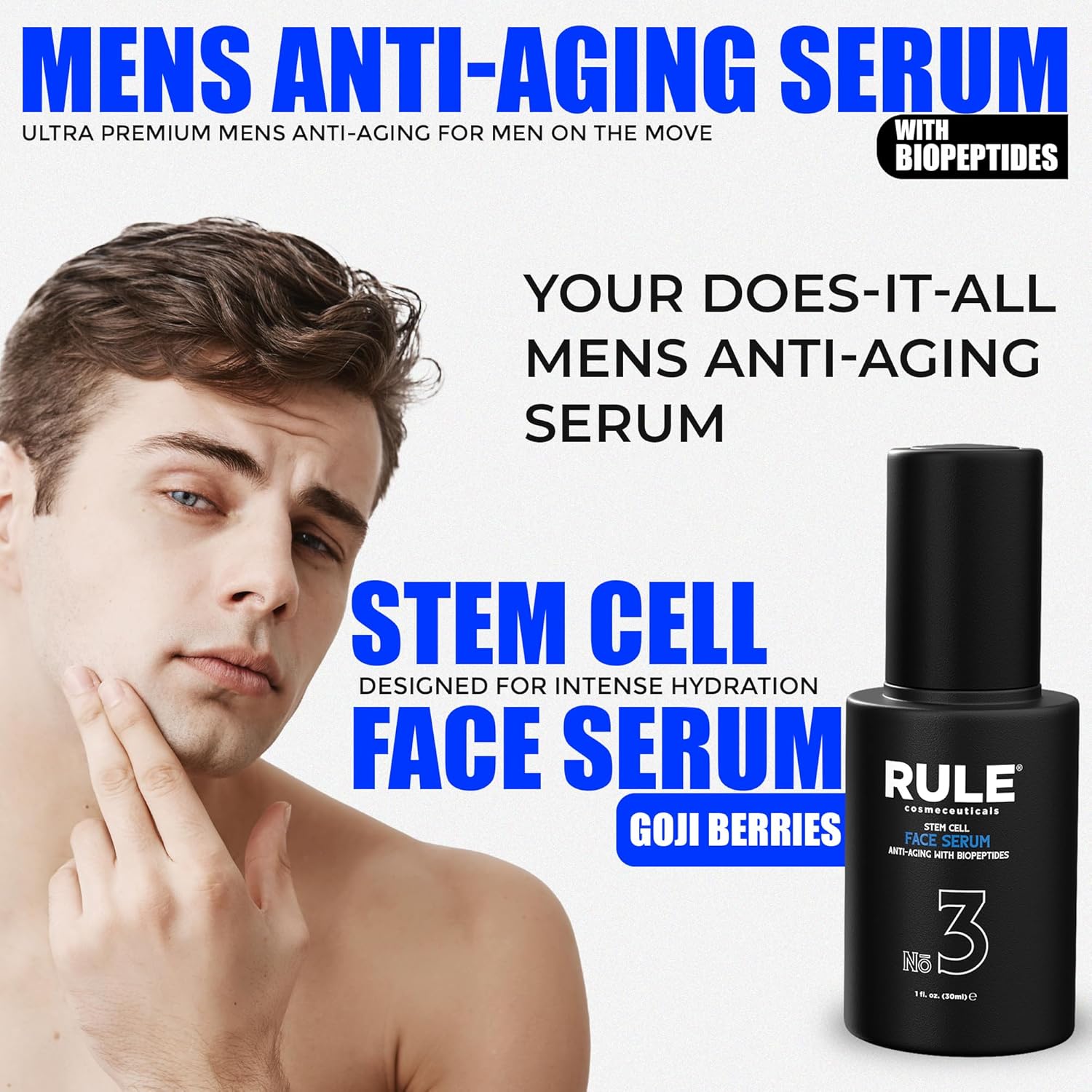- A Little Goes A Long Way - Letâs keep it straightforward and effective. After cleansing, apply 1-2 pumps of this collagen serum to your forehead, chin, and cheeks daily. This anti-aging hyaluronic acid serum is perfect skin care for men who want a simple routine with powerful, visible results.