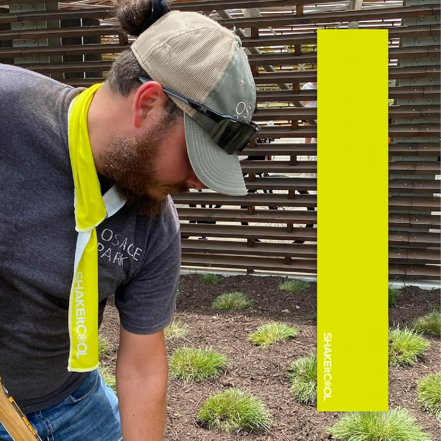 SHAKEitCOOL Original Cooling Towel – Be Cool in Style - Heat Relief, Soft, Lightweight, Sun Protection, Easy Clean - Perfect for Biking, Running, Yoga, Gym, Gardening - Safety Yellow