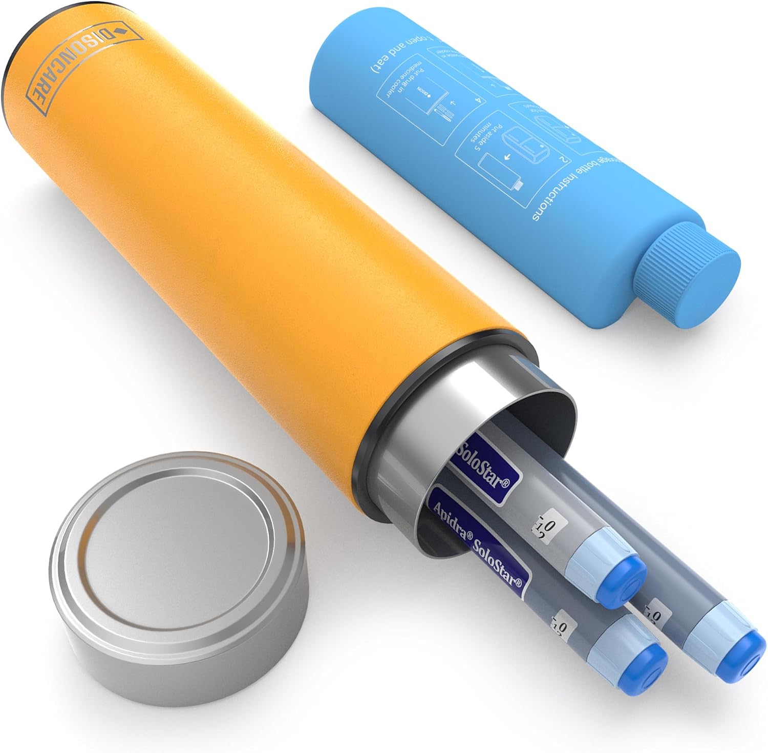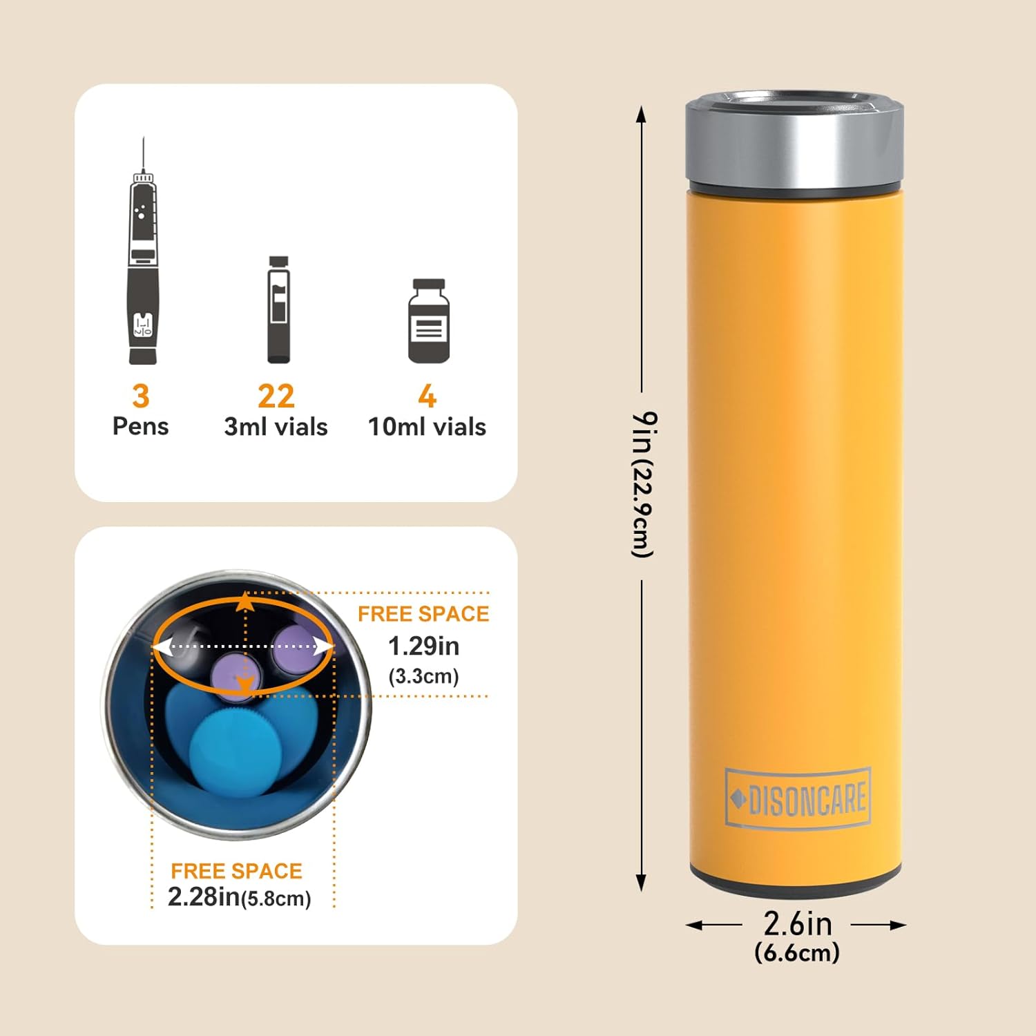 DISONCARE Odyssey 60H 3 Insulin Pens Cooler Travel Case Medication Cooler for Travel TSA Approved Diabetic Insulina EpiPen Carry Case Medicine Bag Ice Pack with Medical Alert Tag(Yellow)