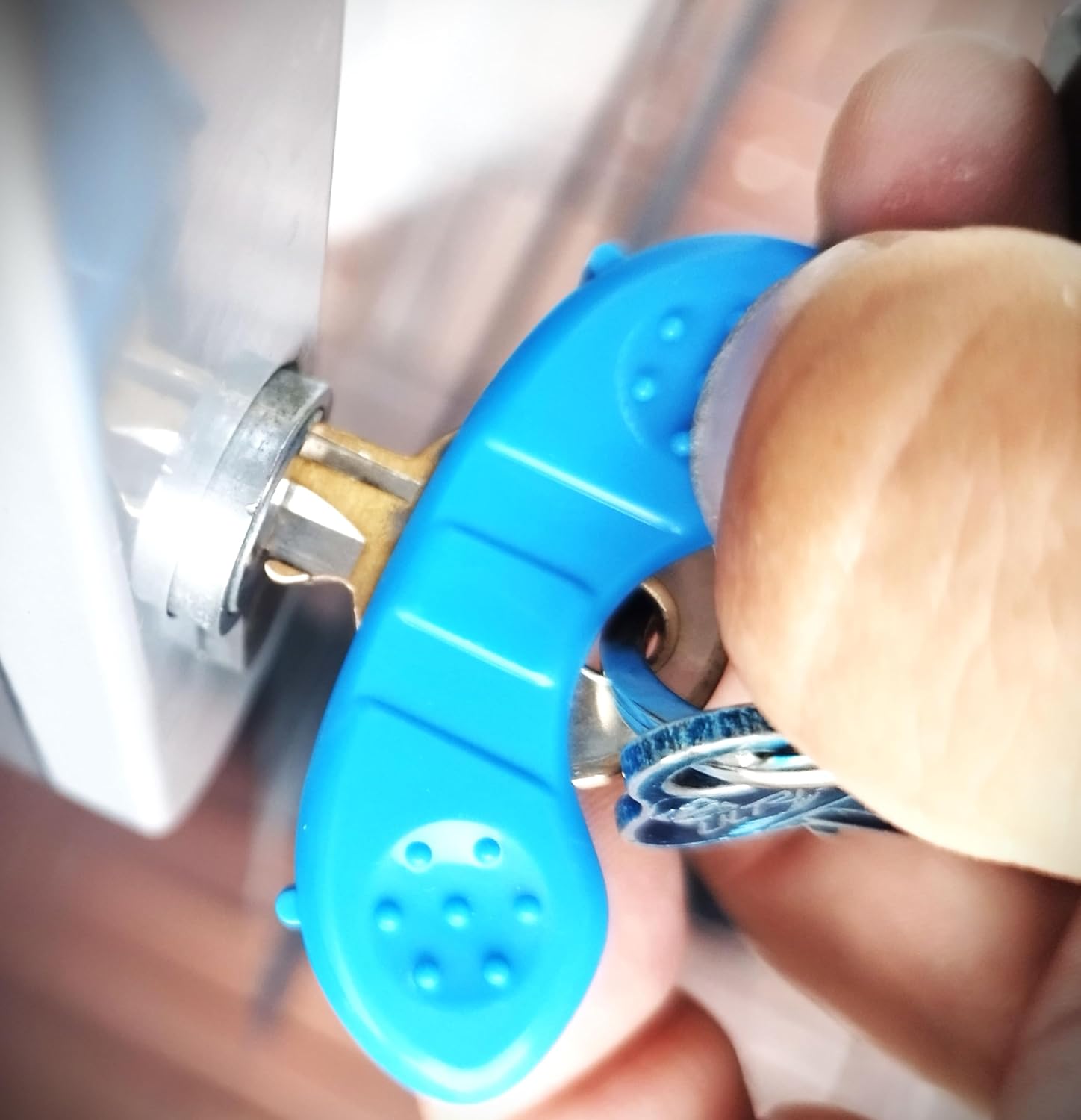 - TURN KEYS EASILY - Turn-A-Key key turner creates a wider surface area for your keys and provides more torque through extra leverage so that far less strength is required to hold and turn a key