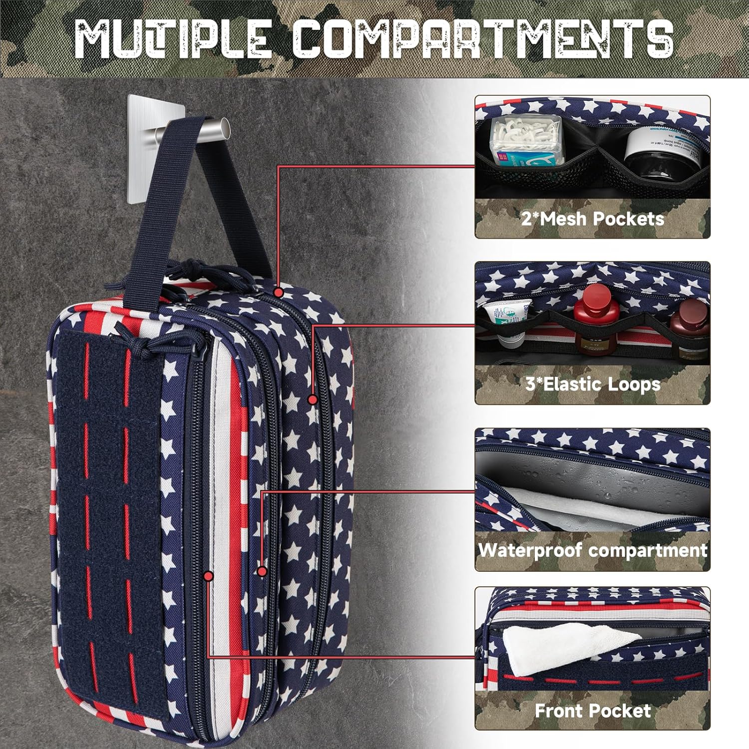 QT&QY Tactical Toiletry Bag For Men Hygiene Bag EDC Military Tool Molle Pouches Small Dopp Kit Mens Shaving Kit Travel shower Bags Star-Spangled