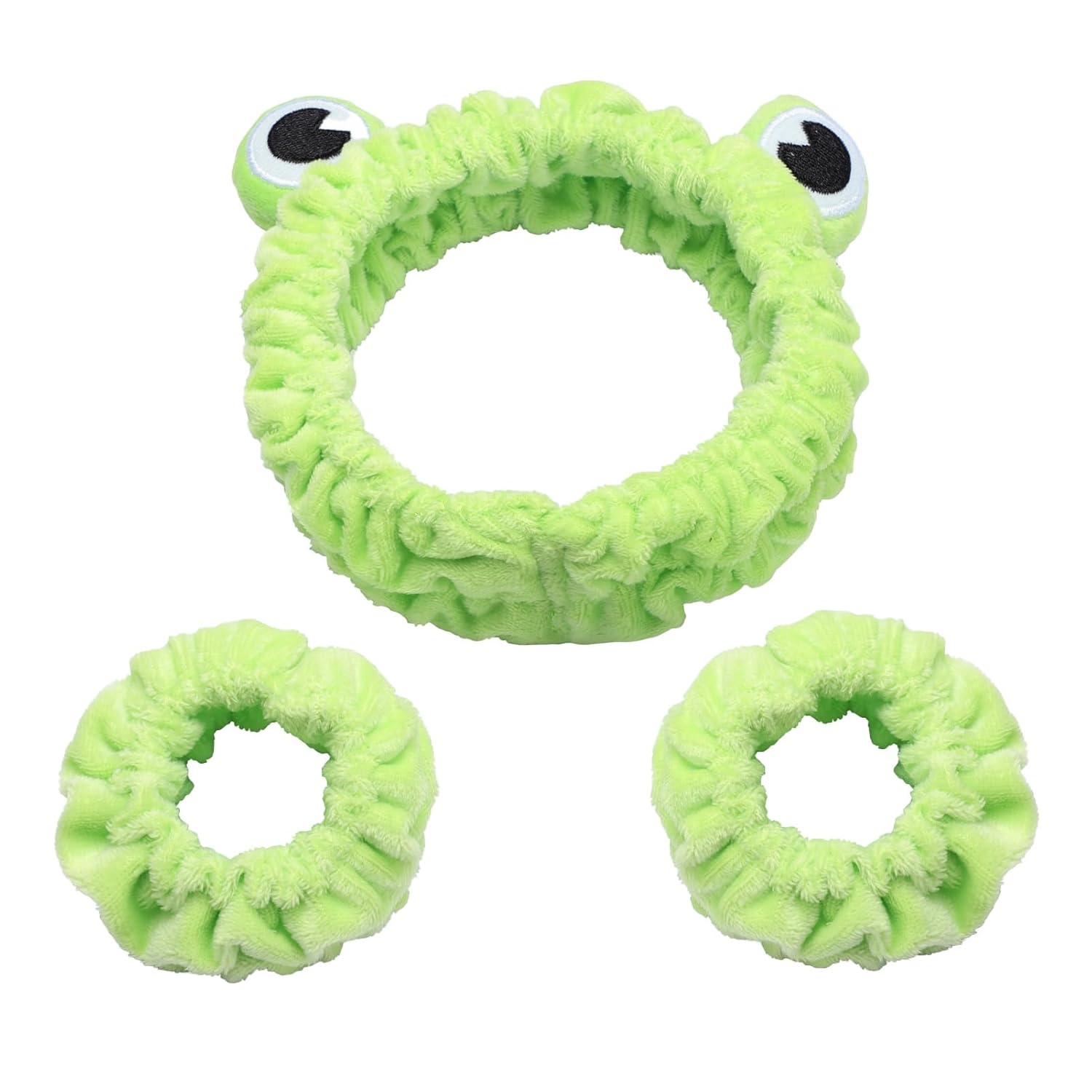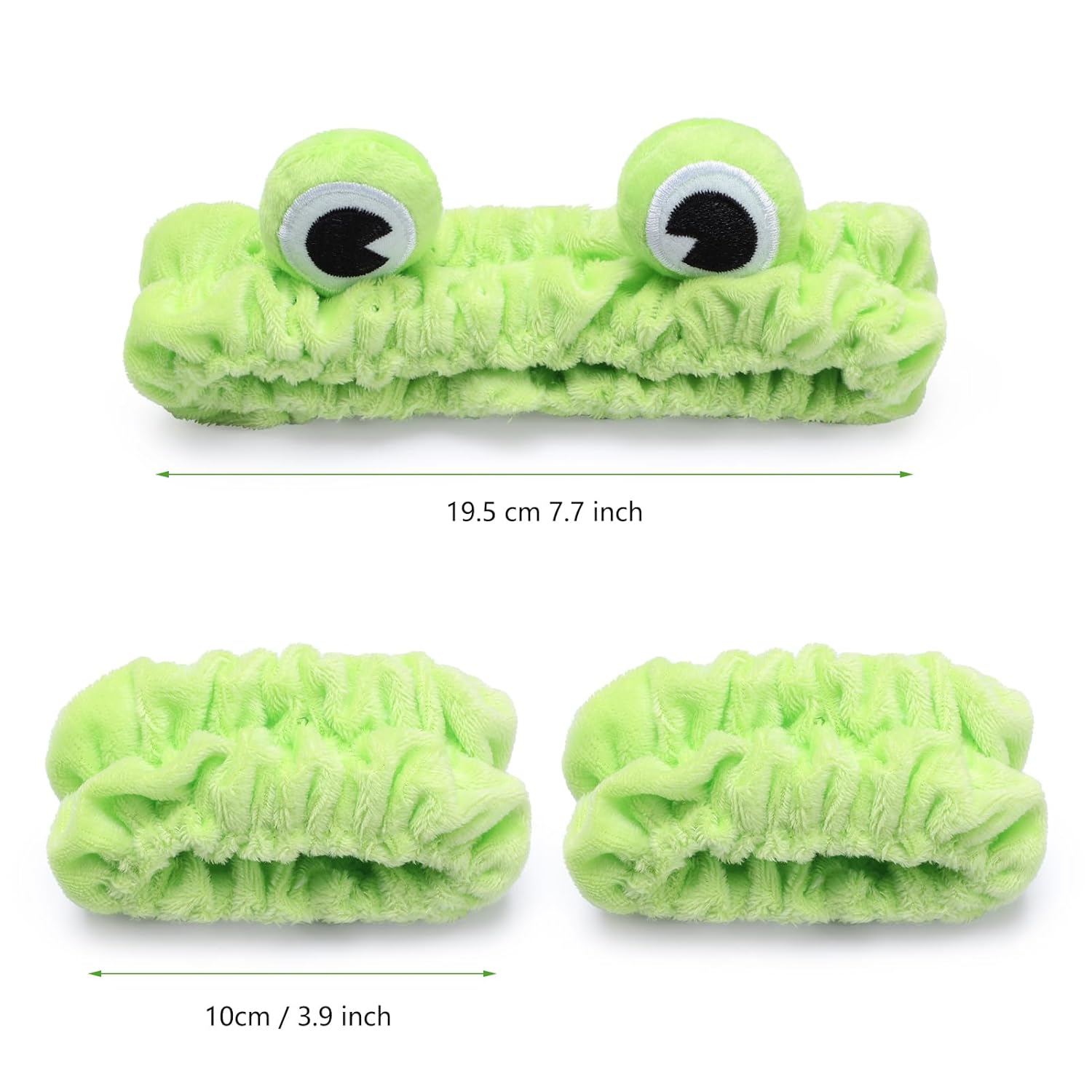 Soft Spa Headband and Wristbands for Face Washing, Cute Frog Makeup Headbands Elastic Skincare Hair Band Shower Head Wraps Hair Accessories for Women Girls