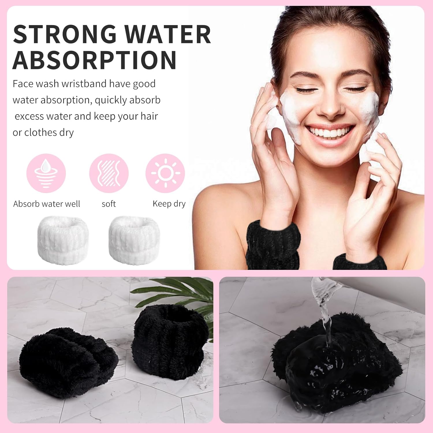 - 2 Set Absorbent Wristband for Replace: These cosmetic headband and wrist wash band all are made of puffy microfiber material, soft, comfortable, durable and machine washable for easy maintenance. The towel wristbands good for quickly absorb excess water and sweat, we provide 4pcs towel wrist bands for daily use and replace, perfectly keep its dry and fresh while also making face washing more comfortable and efficient.