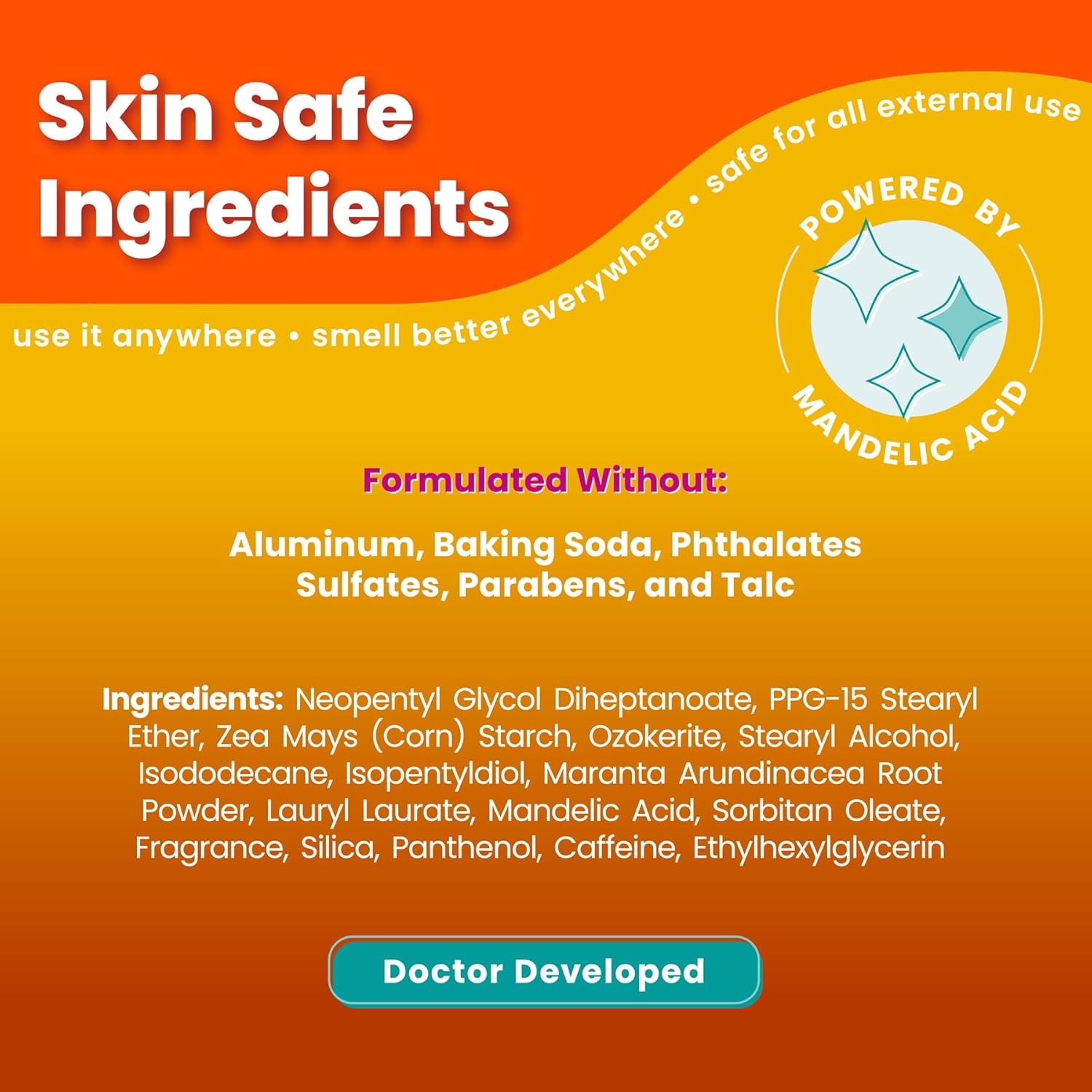 - SMELL BETTER EVERYWHERE - Odor control for pits, privates and beyondâthink feet, underboob, belly buttons, tummy folds, butt cracks, thigh creases or anywhere else you have odor but wish you didnât.