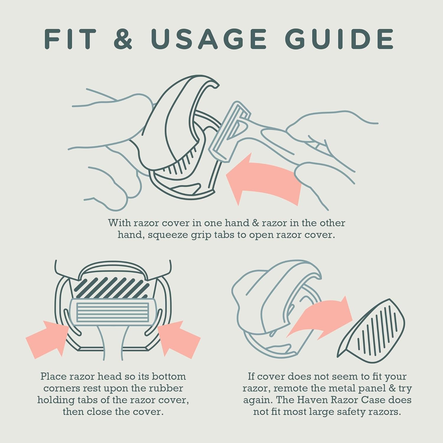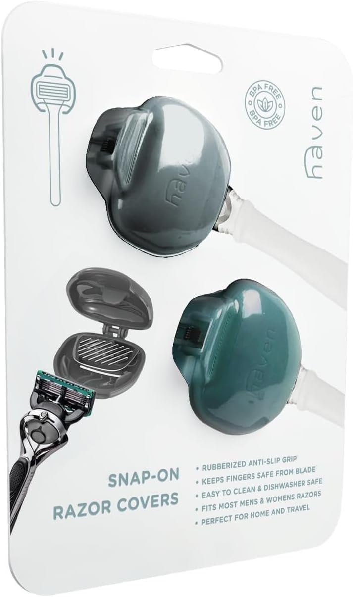 - PACK OF 2 SIMPLE AND EFFECTIVE RAZOR COVERS - Simply snap on the Haven cover directly over your razor head. For larger razors, easily remove the inner plate.
