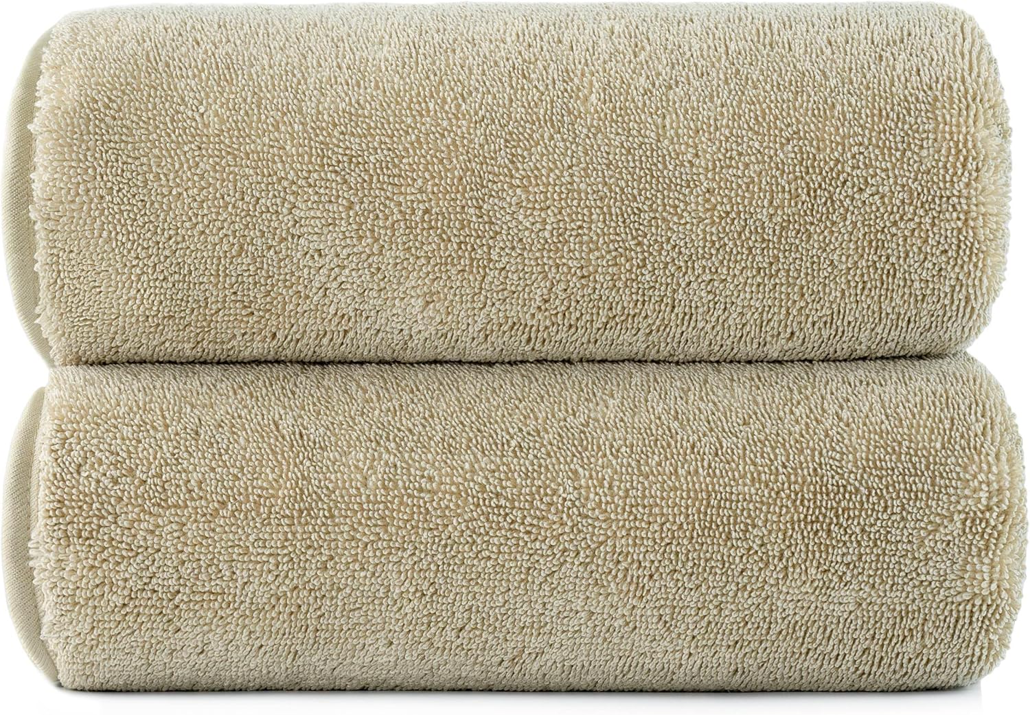 POLYTE Ring Spun Microfiber Oversize Quick Dry Lint Free Bath Towel, 60 x 30 in, Pack of 2 (Beige)
