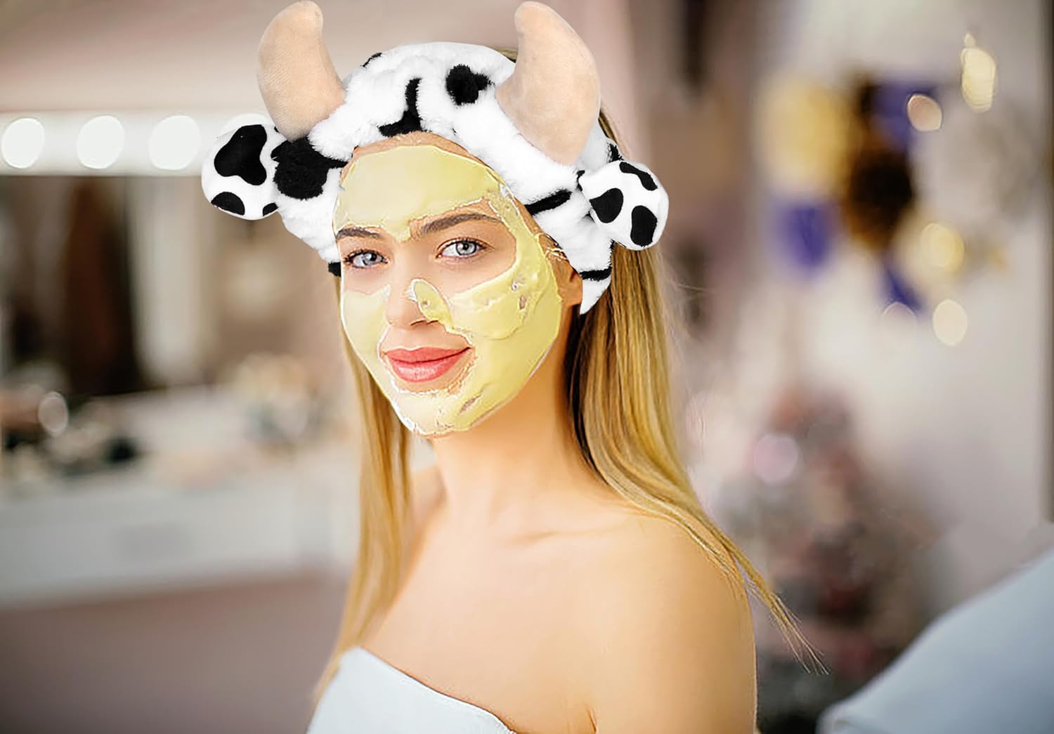 Women's Cow Print Spa Headband and Wristband Set for Washing Face (Cow print &Black)