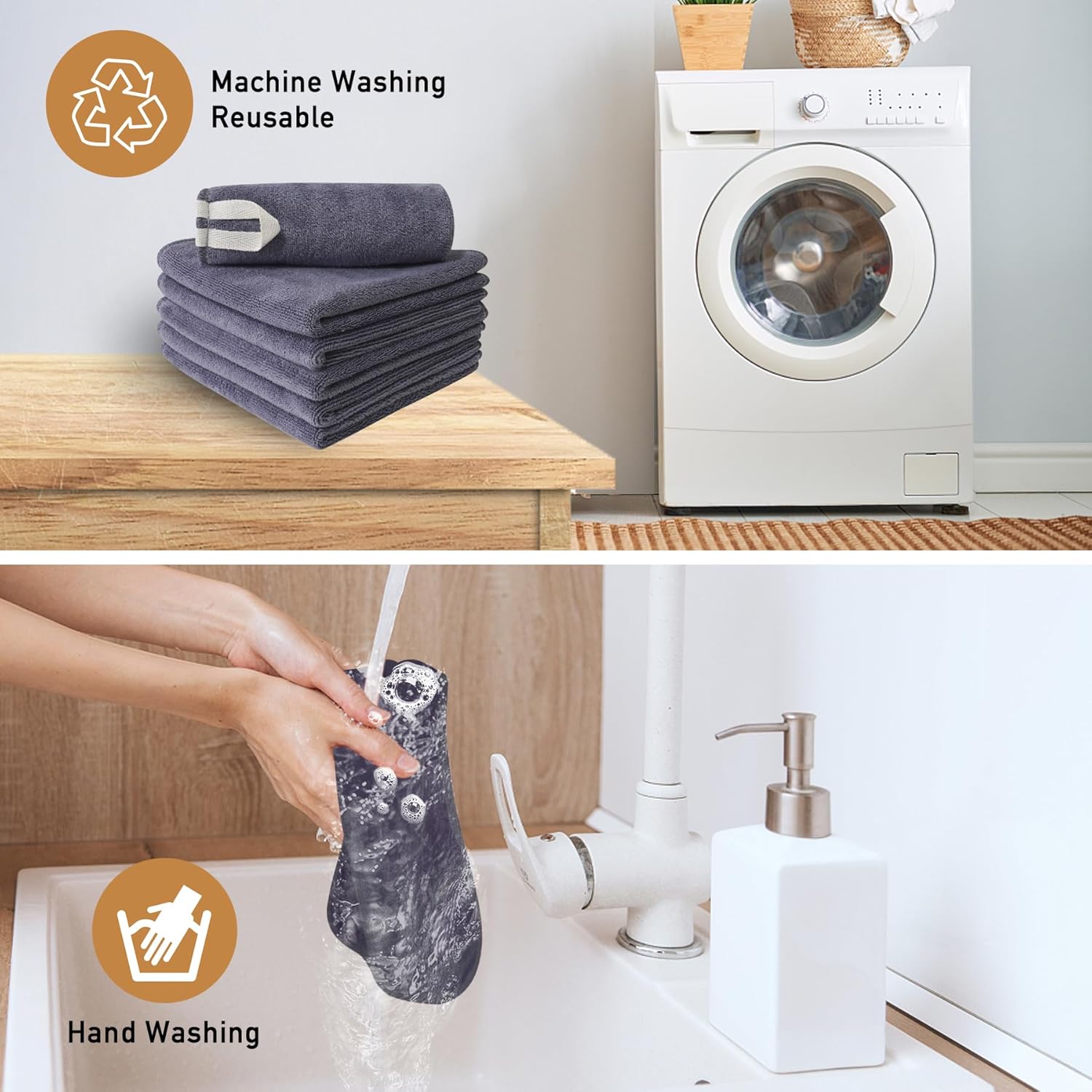 Makeup Remover Cloth, 12 x 12 Inch Microfiber Makeup Remover Towels Erase Makeup with Just Water, Reusable Grey Microfiber Face Towels Washcloths