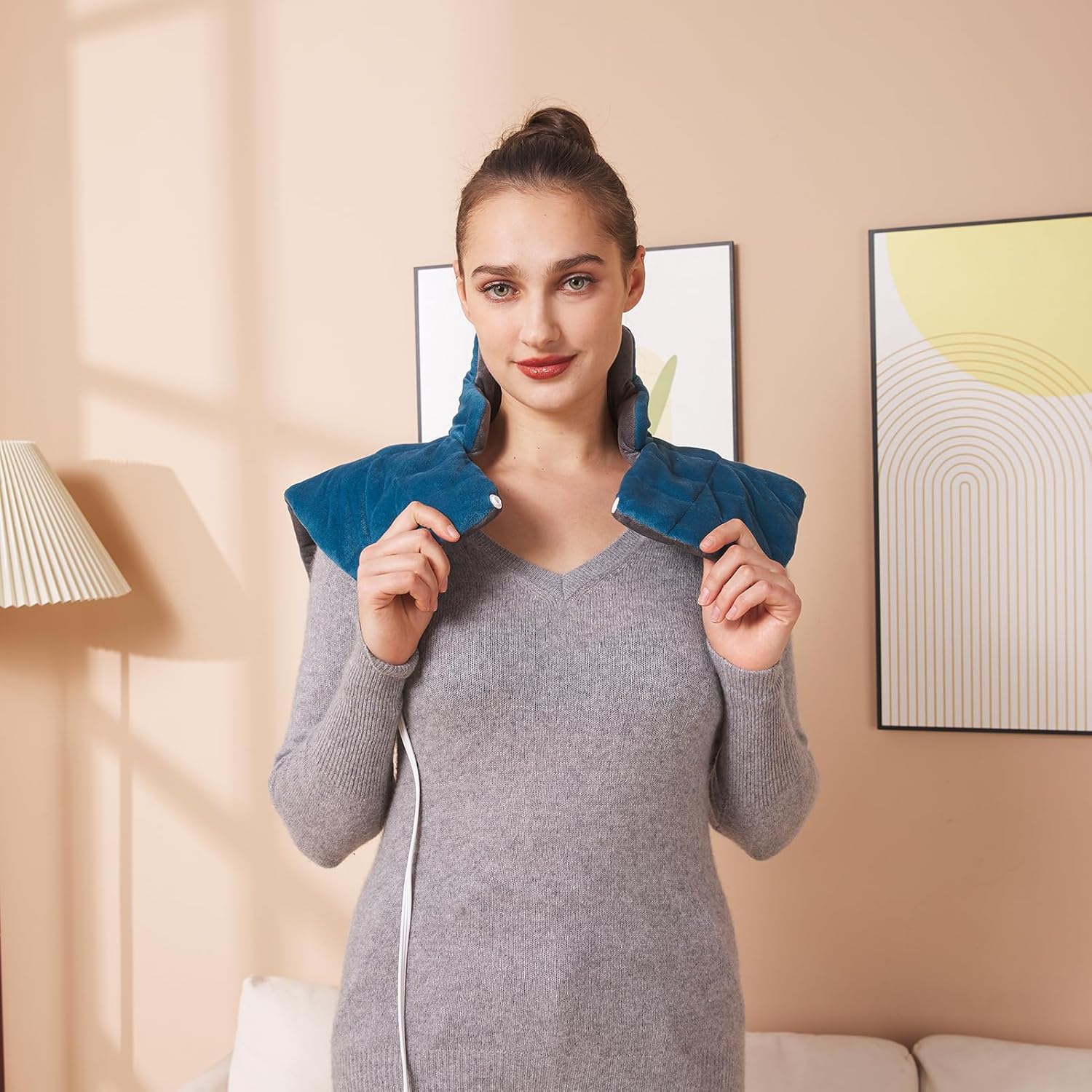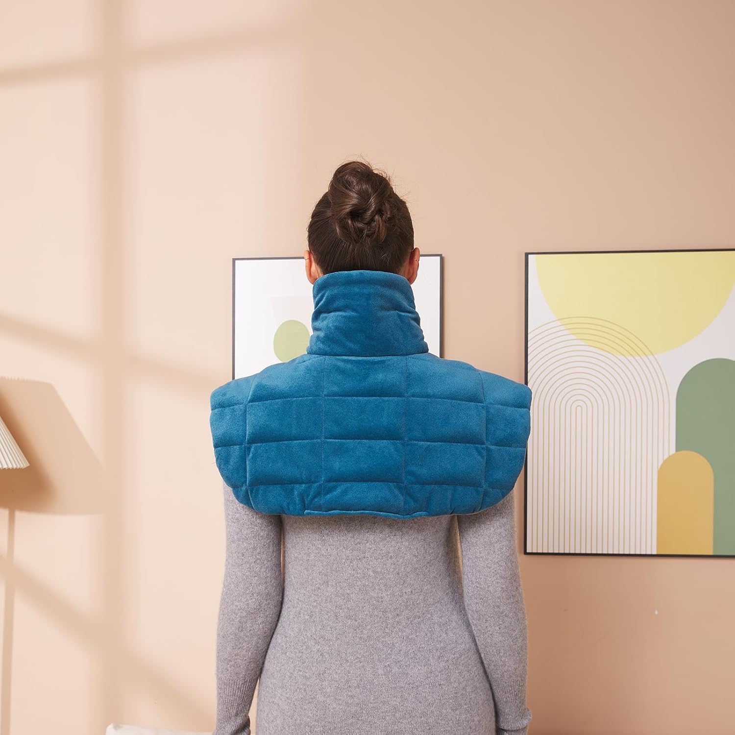 Ambershine 19''x24'' Weighted Neck & Shoulder Heating Pad, 2.5lbs with 12 Temperature Settings& 4 Auto-Off Timers, Pain Relief for Neck/Shoulder/Back, Christmas Gifts for Women Men Mom Dad (Gray&Blue)