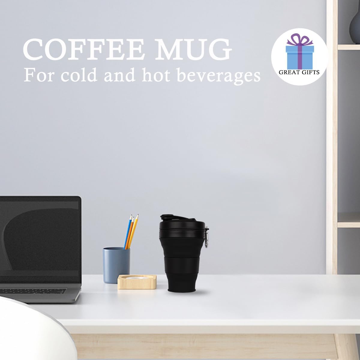 Silicone Coffee Cup with Straw lid Collapsible Cups for Traveling 20oz Lightweight Folding Water Mug for Picnic Hicking Camping Climbing (Black)