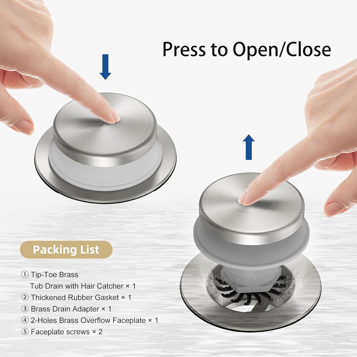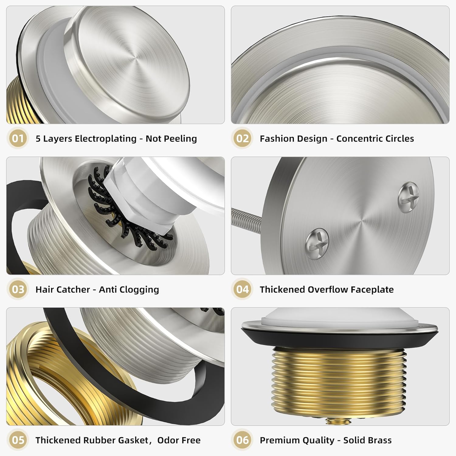 - Beautiful Finish: Anti-fingerprint brushed nickel tip-toe bathtub drain matches your faucet and bathroom decor; 5-layer electroplating protects against rust, peeling, and corrosion; maintains appearance over time
