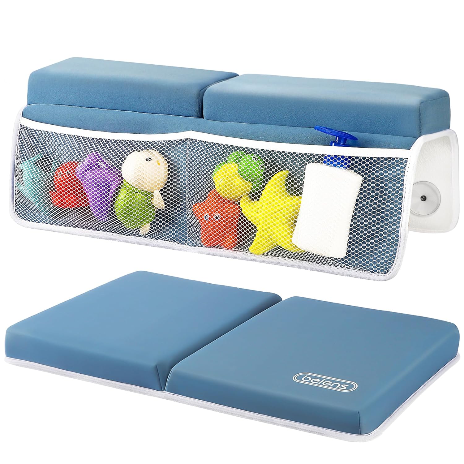 beiens Bath Kneeler and Elbow Rest Pad Set - 1.5'' Comfortable Thick Baby Bath Kneeler Pads, Quick Dry Soft Kneeling Pad for Baby Bath Time, Non-Slip Knee& Arm Support Bathtub Mat with Toys Organizer