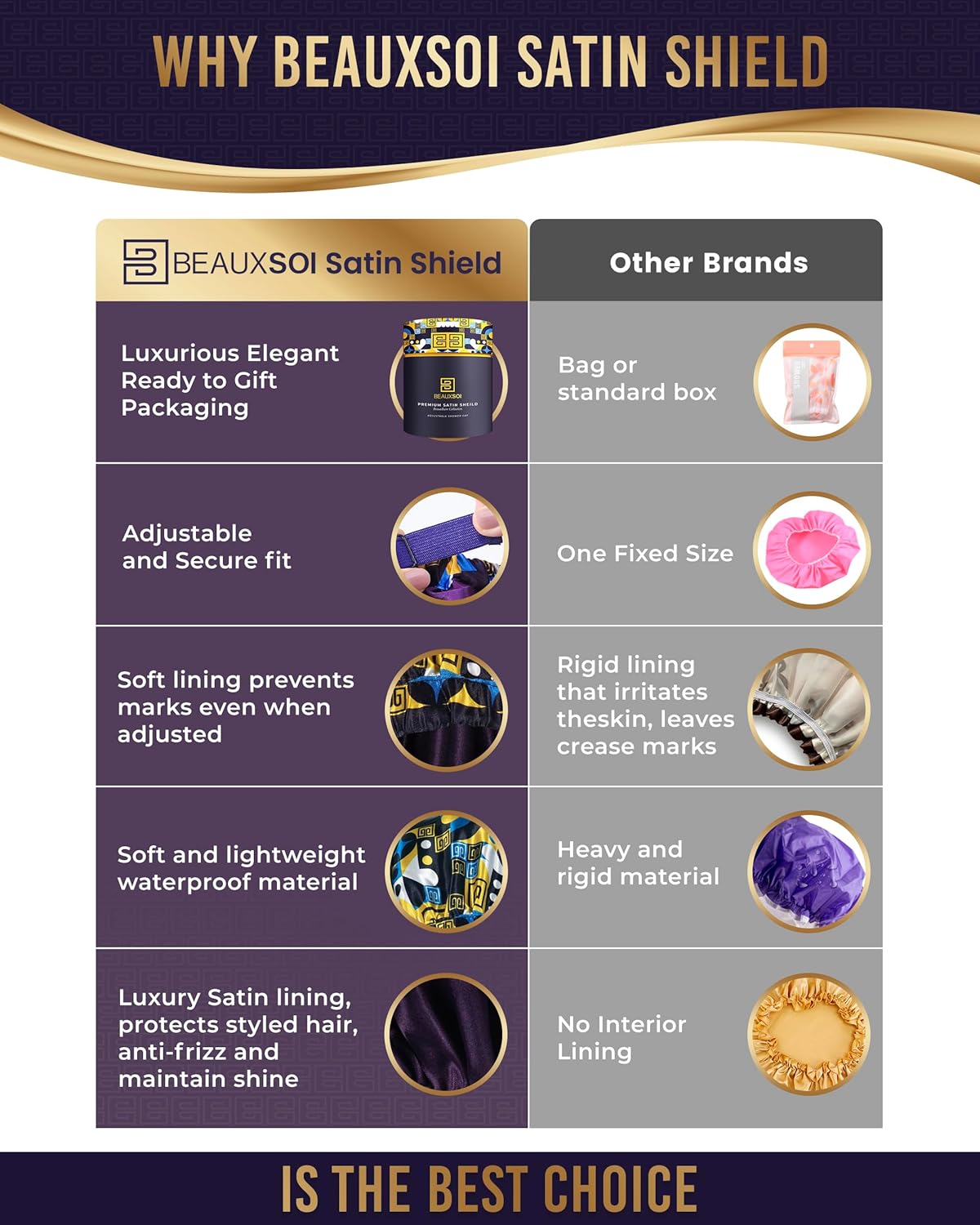 - Luxury Shower Caps Packaging: Created by BEAUXSOI designer, Olivera Popov, our womens shower caps come in exquisite design & matching packaging making it a perfect gift as reusable shower caps.