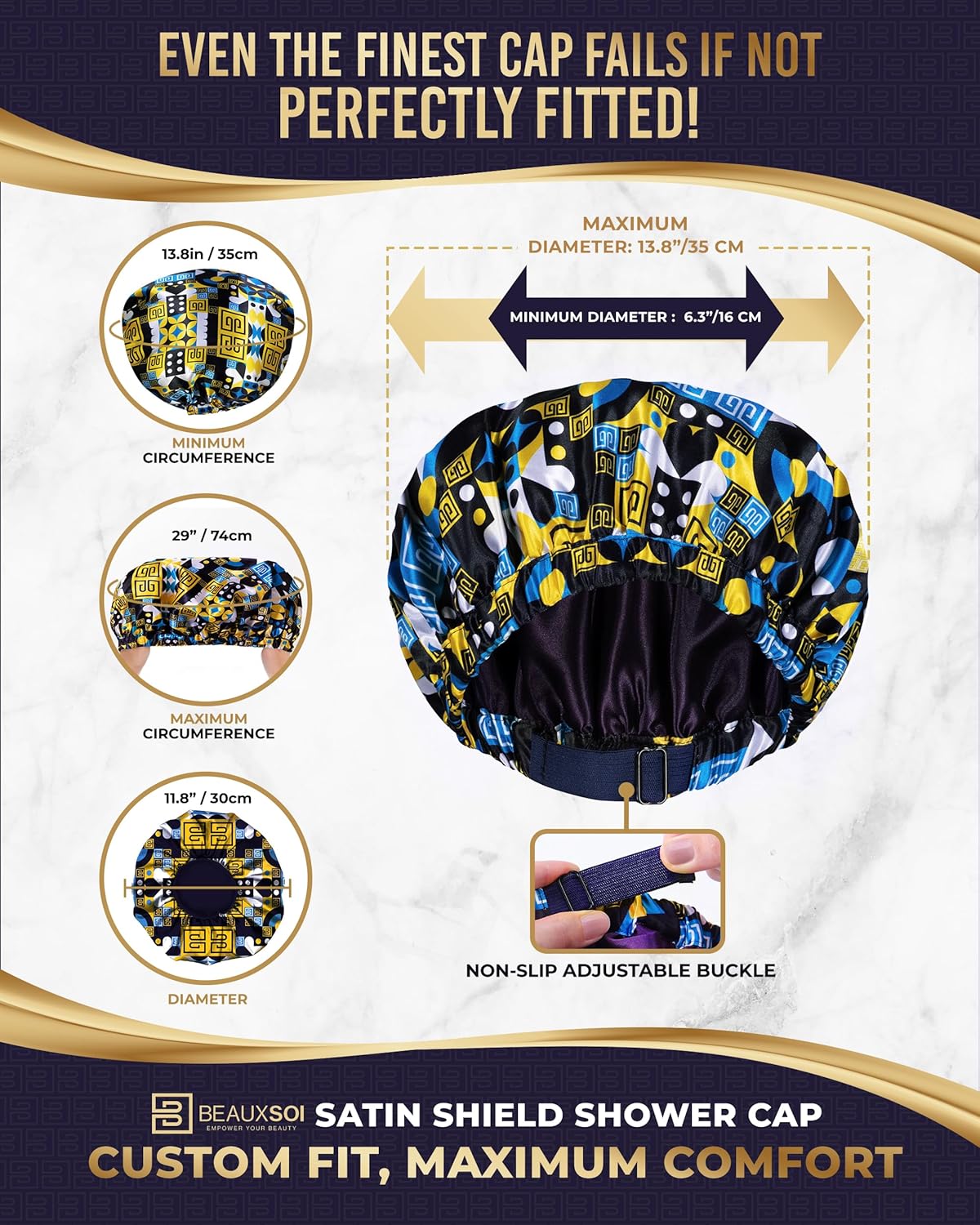 Luxury Reusable Waterproof Shower Cap for Women - Satin Lined, Adjustable - Keeps Hair Dry, Durable Hair Bonnet by BEAUXSOI (African Majesty)