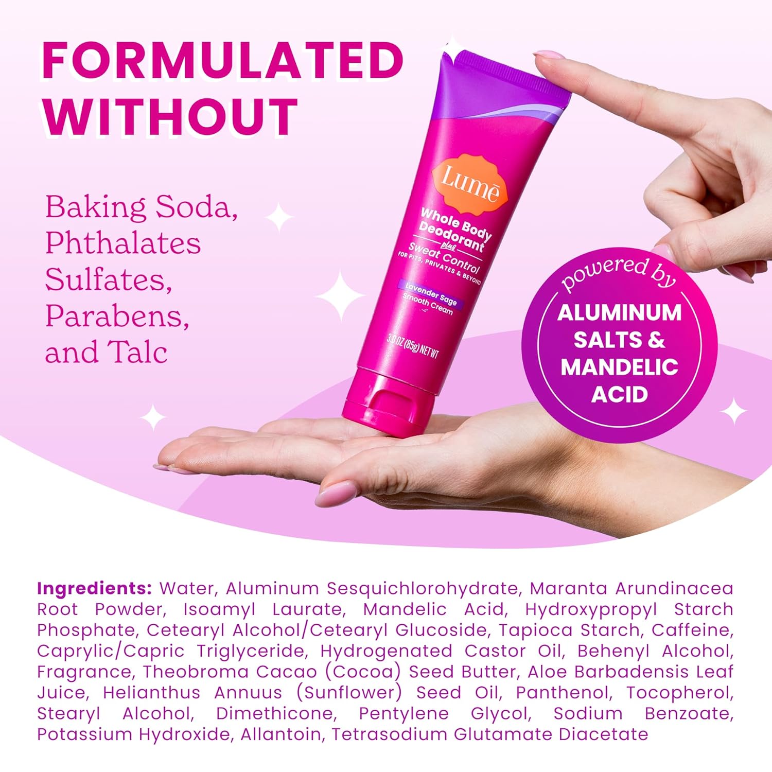 Lume Whole Body Deodorant Plus Sweat Control - Smooth Cream Tube - 72 Hour Odor And Sweat Control - Baking Soda Free, Skin Loving - 3.0 ounce (Pack of 2) (Lavender Sage)