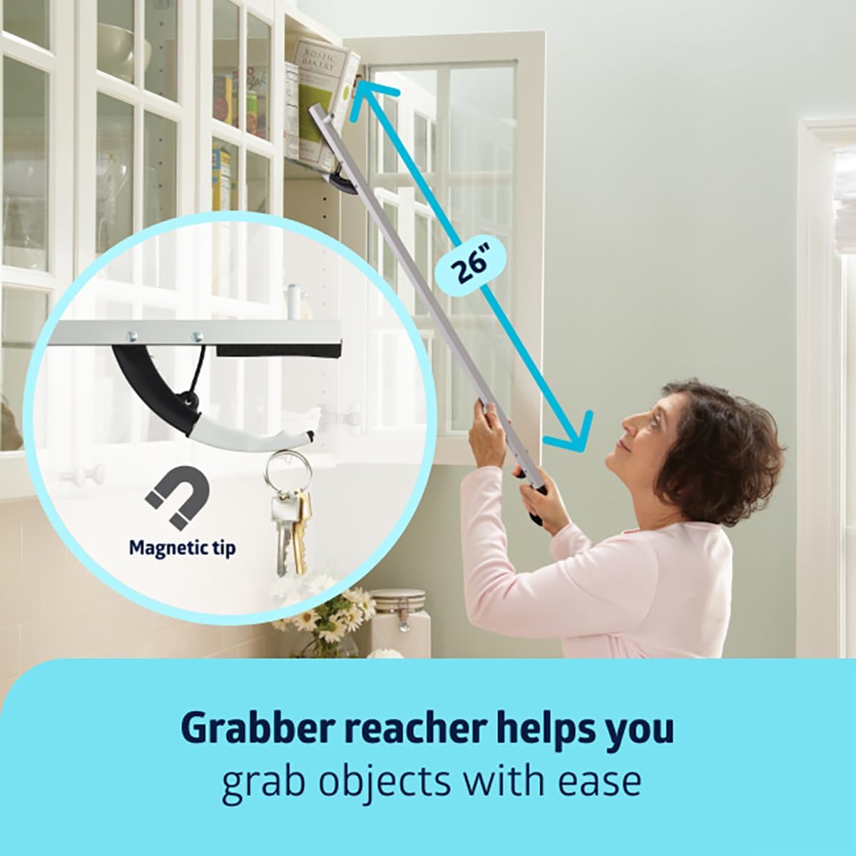 - REACH WITH CONFIDENCE - 26" grabber reacher helps suer grab large or small objects on the ground; features a magnetic tip plus a tab to hold keys