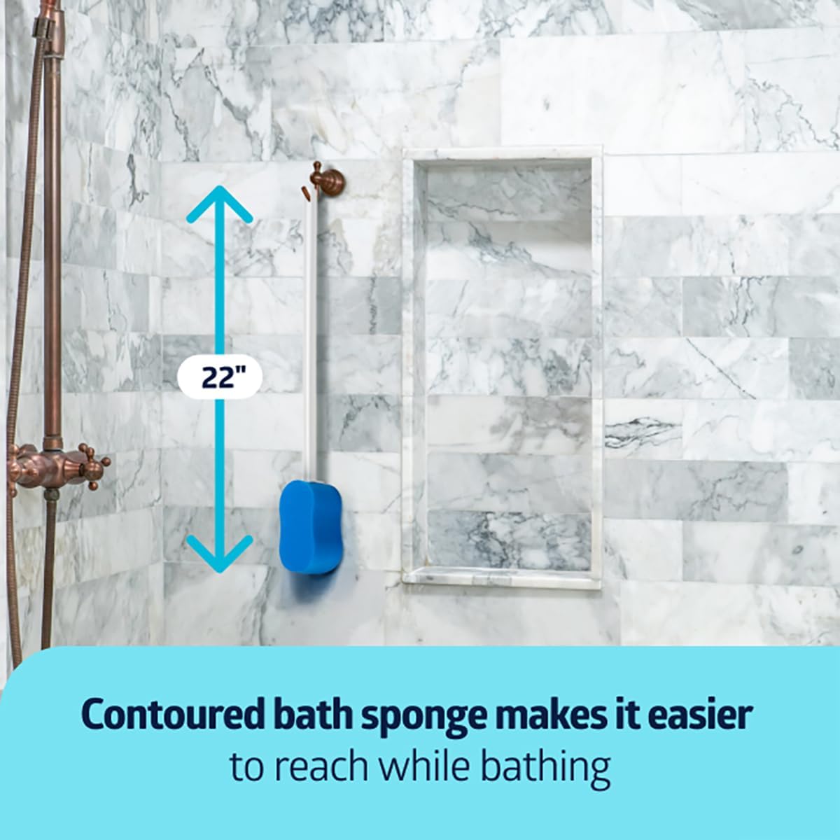 - BATHE SAFETLY - 22" contoured bath sponge helps user to wash hard-to-reach areas; makes personal cleaning easier and helps user to avoid the need for bending