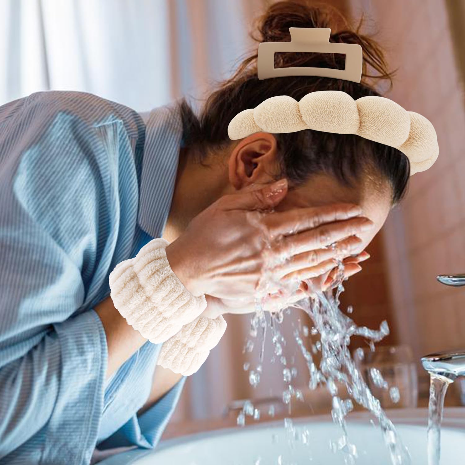 - Water Absorption & Stretchy - Wrist bands can prevent water from spreading to your arms and keep your hair dry. The face wash headband has a great elasticity, suitable for most people's head and wrist circumferences.