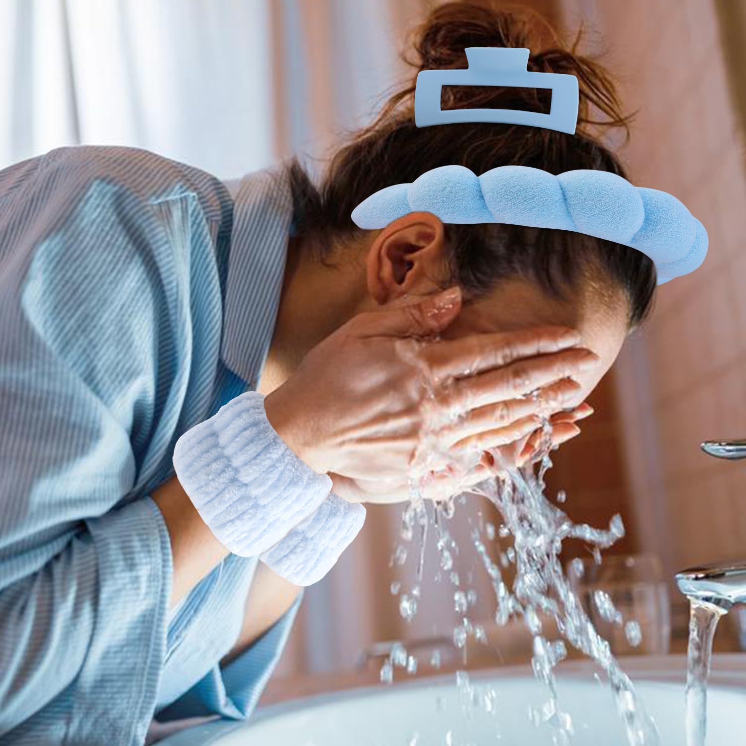 - Water Absorption & Stretchy - Wrist bands can prevent water from spreading to your arms and keep your hair dry. The face wash headband has a great elasticity, suitable for most people's head and wrist circumferences.