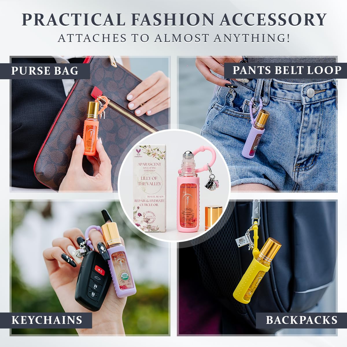 - TAKE IT EVERYWHERE: Designed for life on the go. Each bottle comes with a sleek, protective case and keychain that clips onto your bag, keys, or belt loop â so youâll never forget your daily nail care again.
