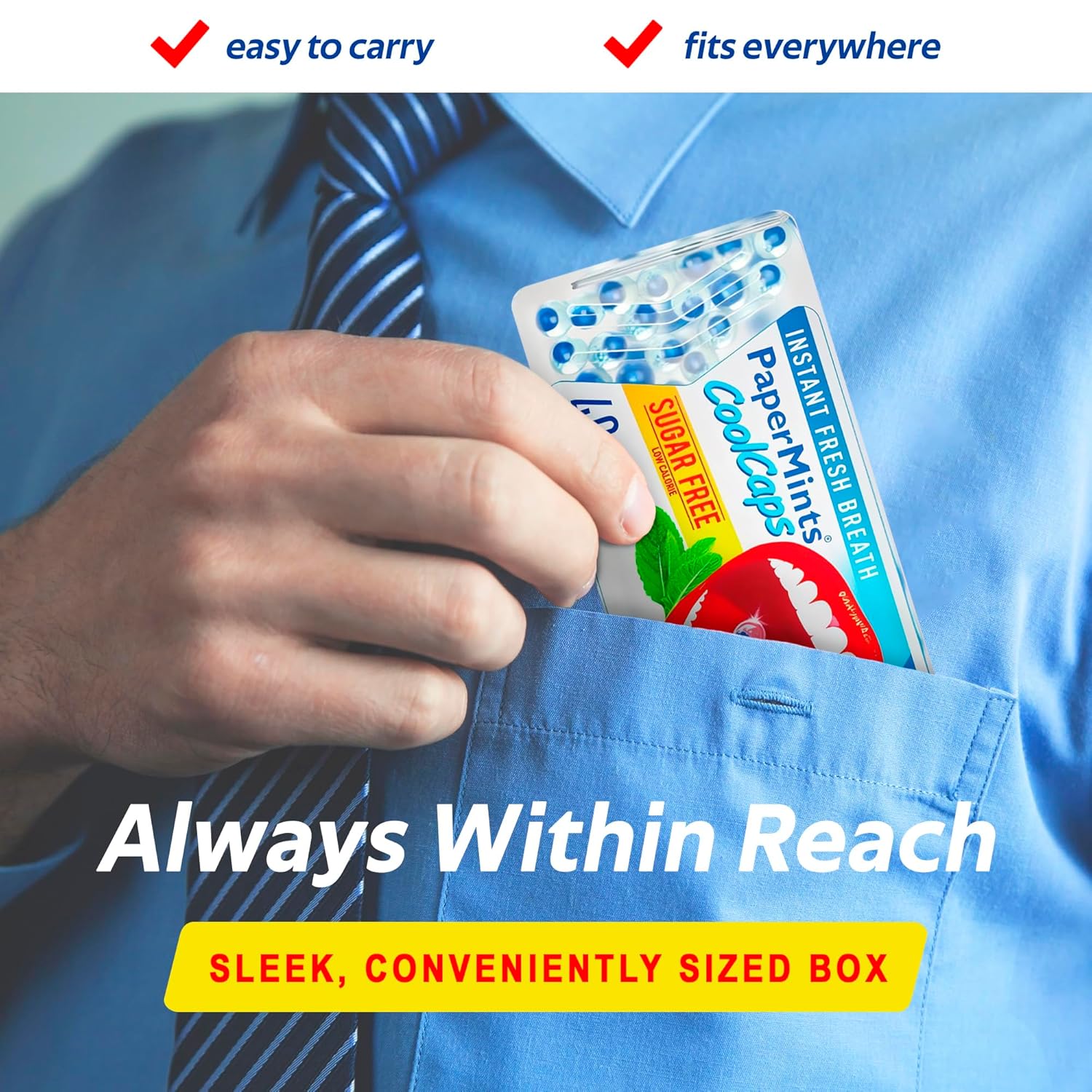 - INSTANT FRESHNESS: Papermints CoolCaps provide an instant burst of refreshing minty flavor, banishing bad breath on the spot. Never worry about your breath again!