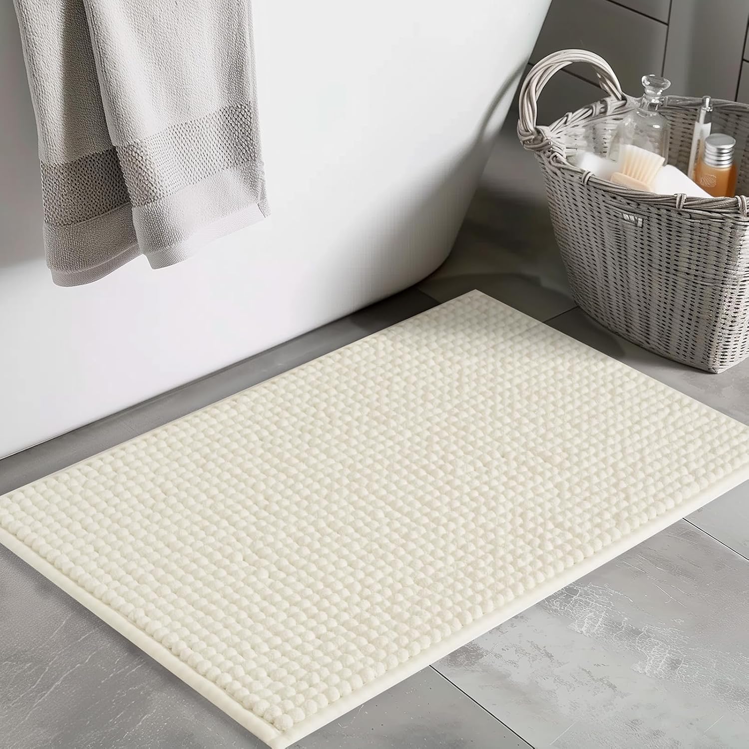 FRESHMINT Thick Chunky Chenille Bathroom Rugs 20"x32", Non Slip Bath Mat for Bathroom Floor, Soft Bathroom Decor Accessories, Cute Shower Mat Water Absorbent, Washable, Cream White